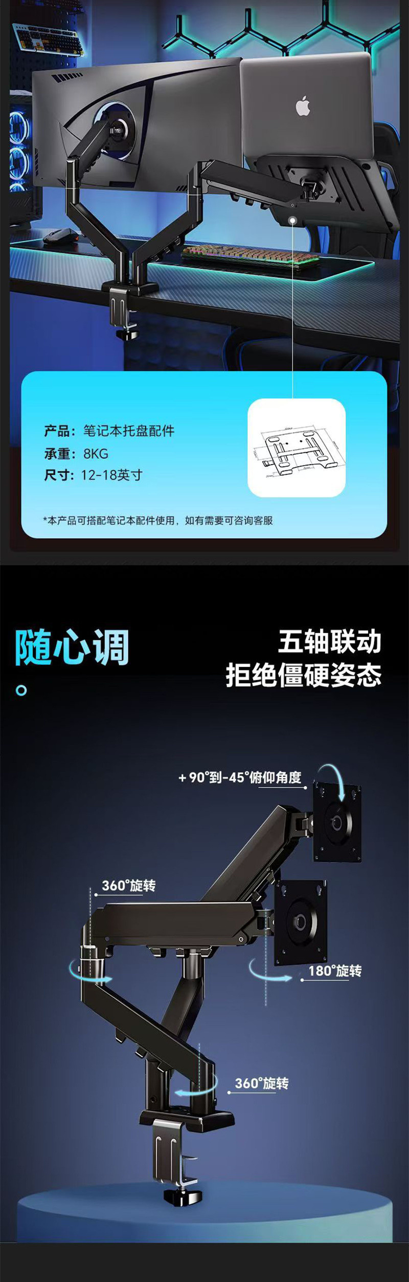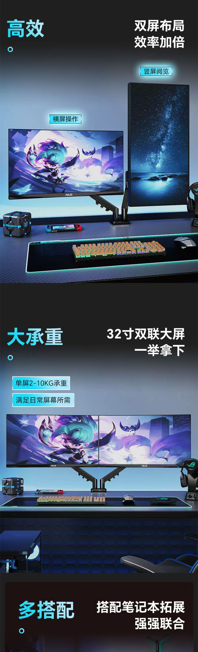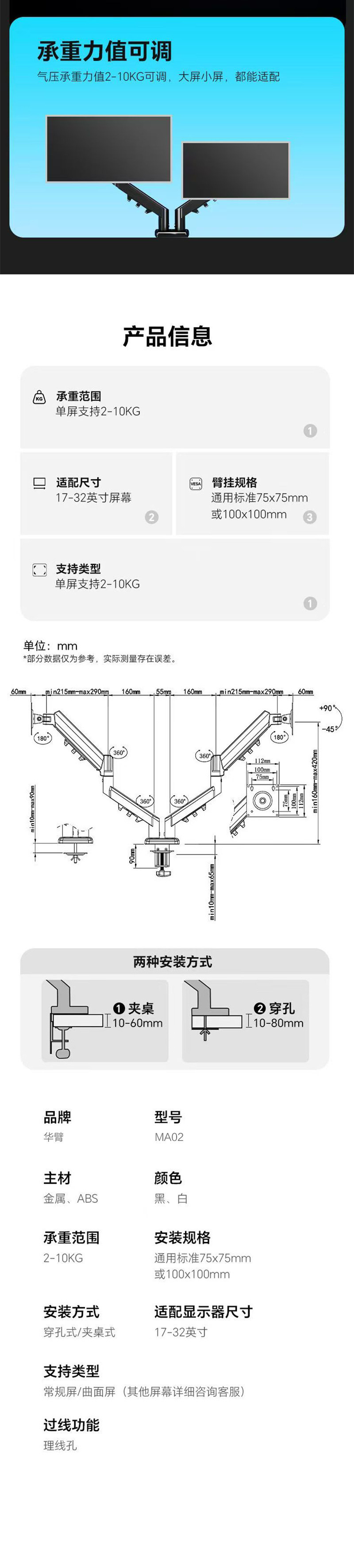 Huaarm 새로운 듀얼 스크린 모니터 스탠드 펀치 프리 공기압 로봇 팔 회전 노트북 메인 화면 왼쪽 및 오른쪽 듀얼 스크린스토어 가기