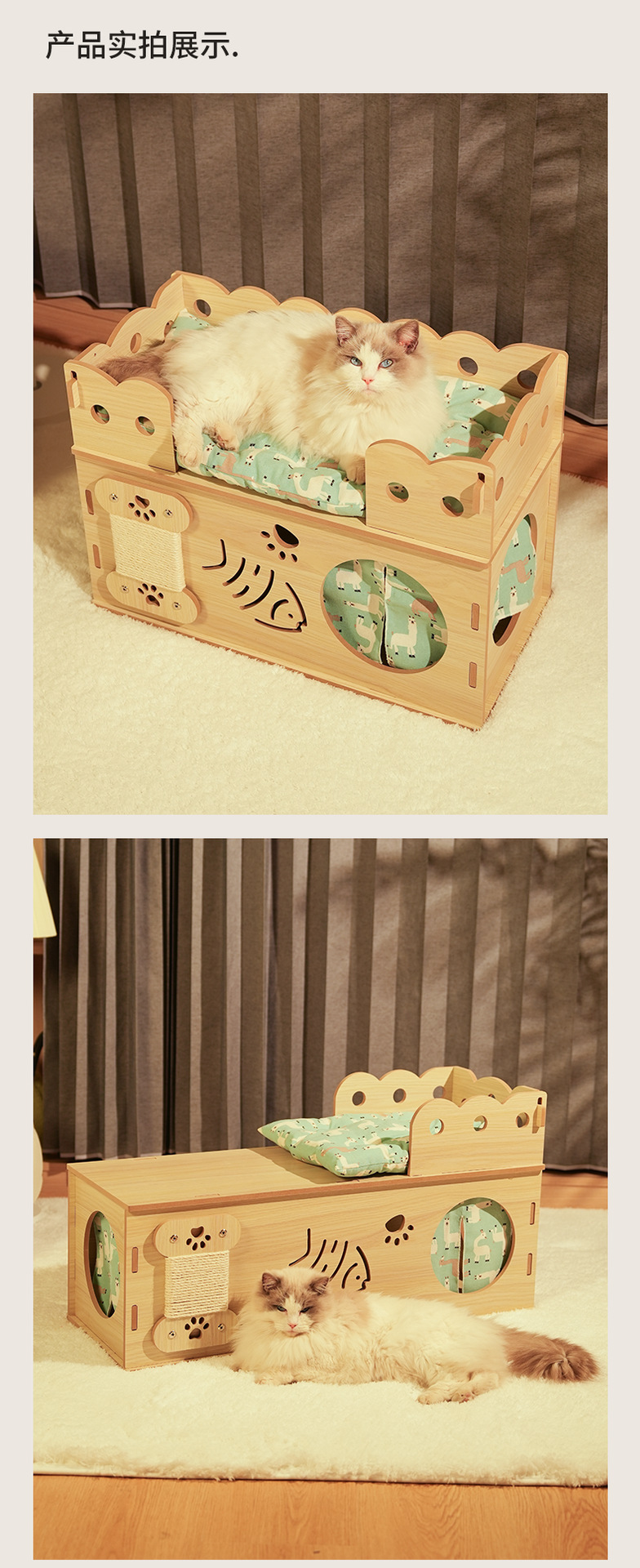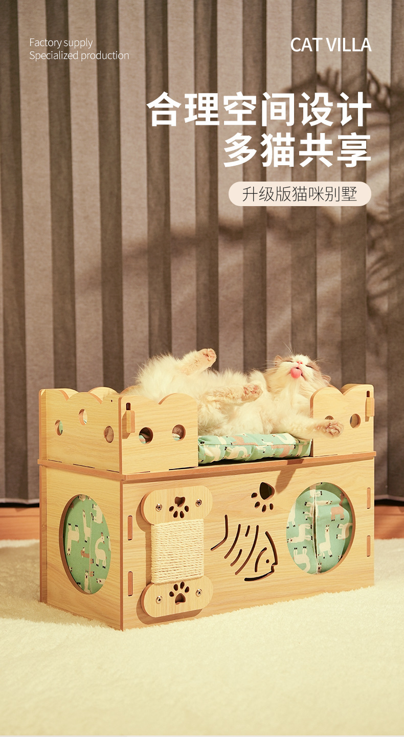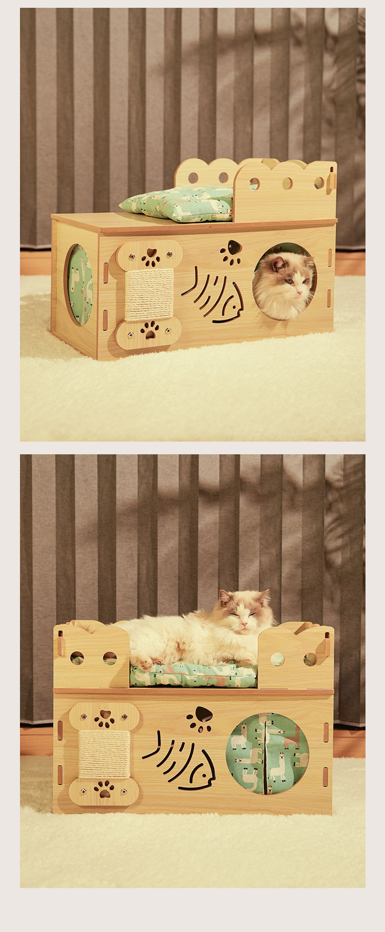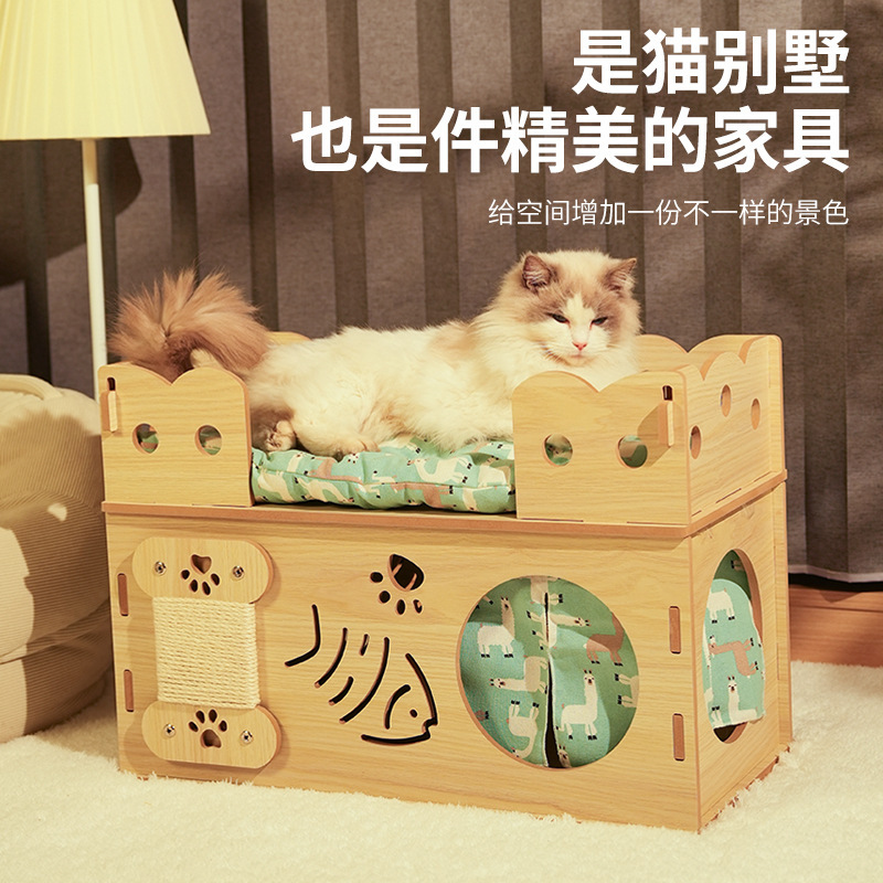 사계절 사용 가능한 나무 고양이 둥지, 고양이 터널, 고양이 장난감, 고양이 스크래치 보드, 이중 고양이 둥지, 고양이 빌라, 고양이 침대