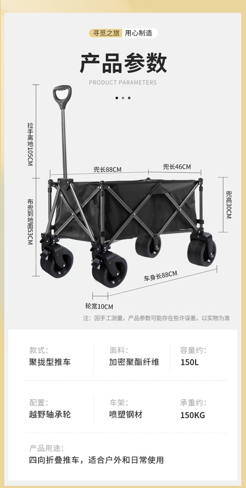 야외 캠핑 트레일러, 캠핑카, 휴대용 접이식 트롤리, 손으로 당기는 트레일러, 집에서 쇼핑 및 짐 운반용으로 사용 가능
