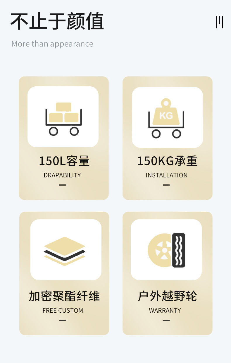 • 150L 카키색 10cm 폭 오프로드 휠(로고 랜덤)과 검정색 알루미늄 합금 테이블