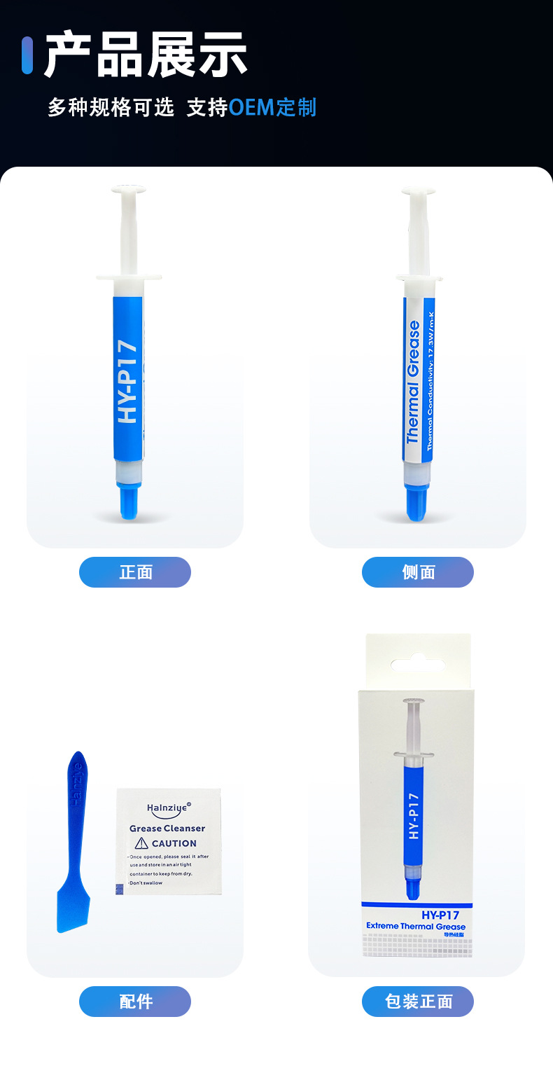 Huaneng Zhiyan 신제품 HY-P17 높은 열 전도도 실리콘 그리스 cpu 나노 열 붙여 넣기 노트북 그래픽 카드 오버 클럭킹 실리콘 그리스스토어 가기