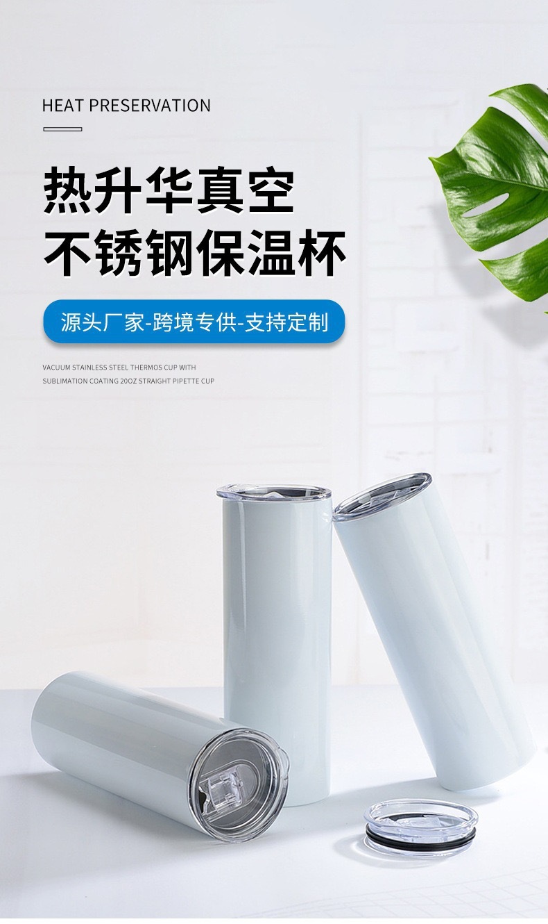 국경 간 인기 판매 20oz 승화 보온병 컵 304 스테인레스 스틸 진공 스트레이트 컵 솔리드 컬러 간단한 자동차 컵