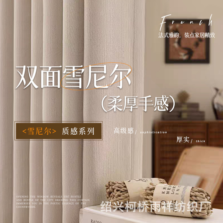 두꺼운 셔닐 슈퍼 마스터 거실 발코니 커튼 침실 프렌치 라이트 럭셔리 양면 같은 색상 소자본주의 감성