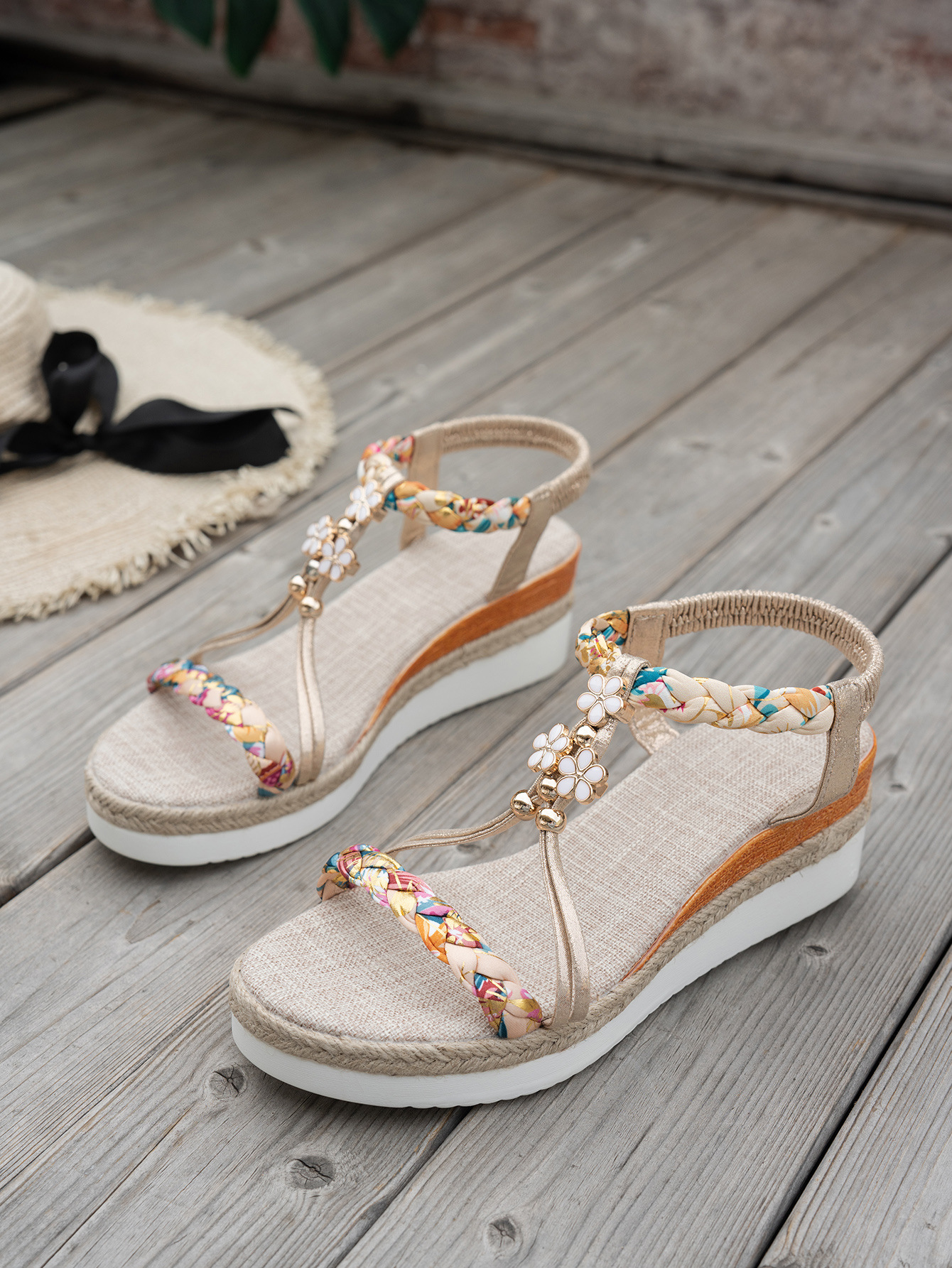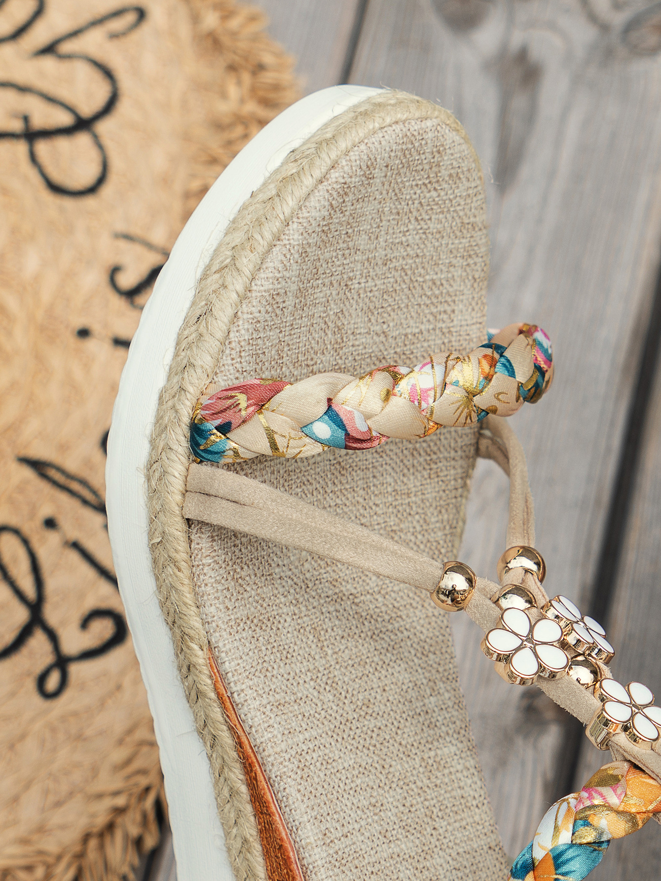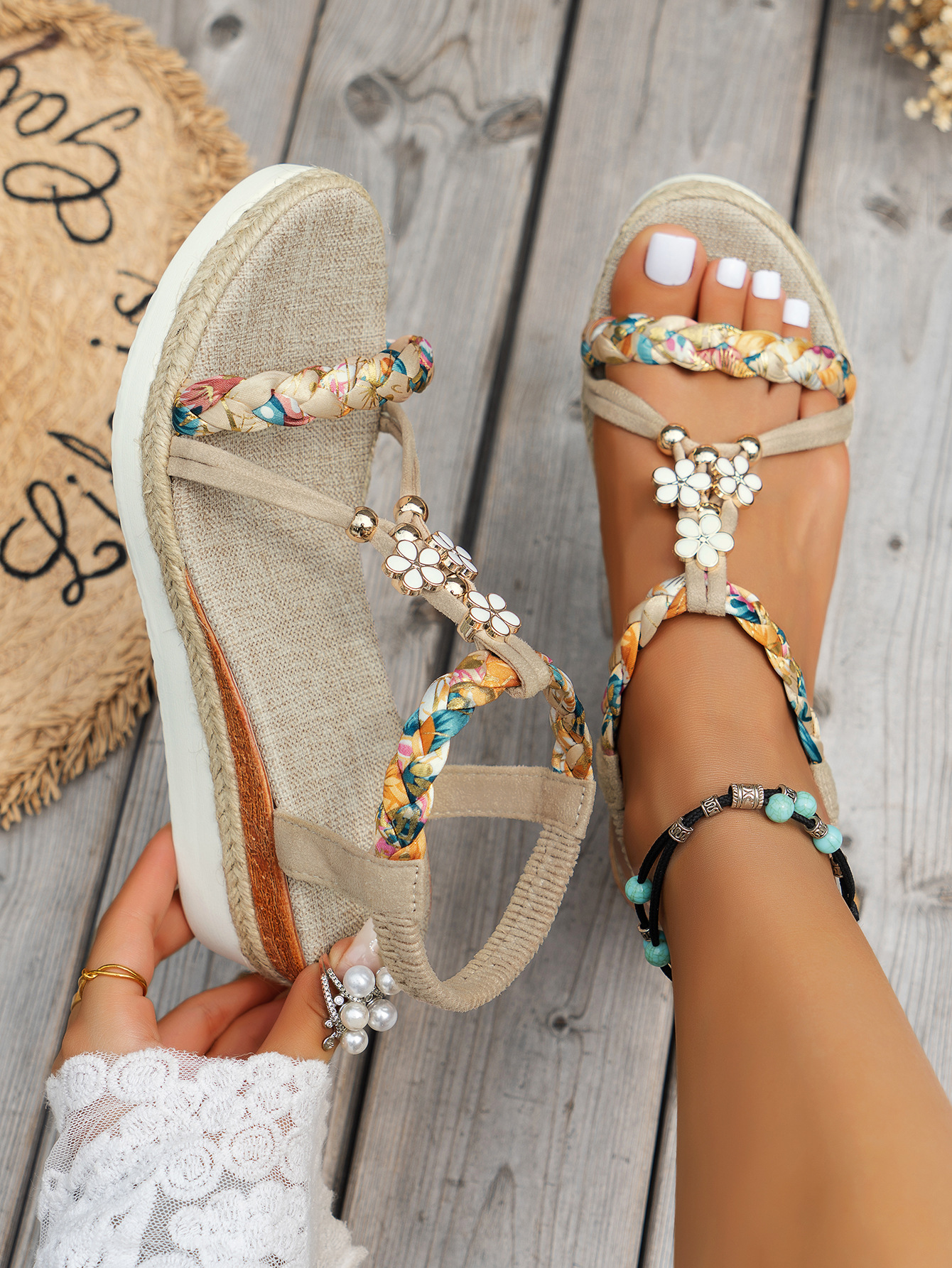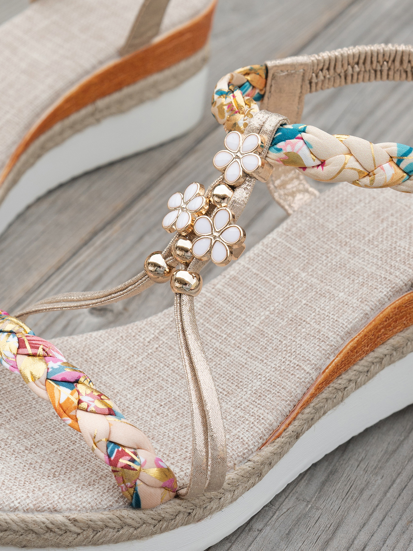 국경 간 대형 민족 스타일 새로운 스타일의 라인 석 장식 웨지 패션 비치 여성 탄성 밴드 샌들 짠 여성 신발