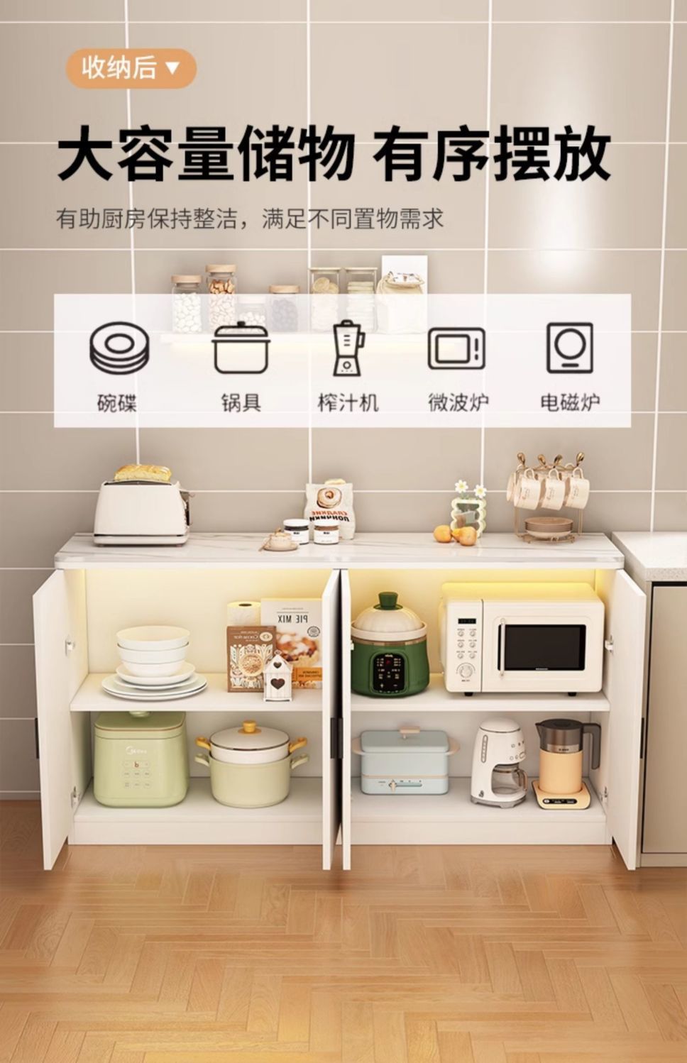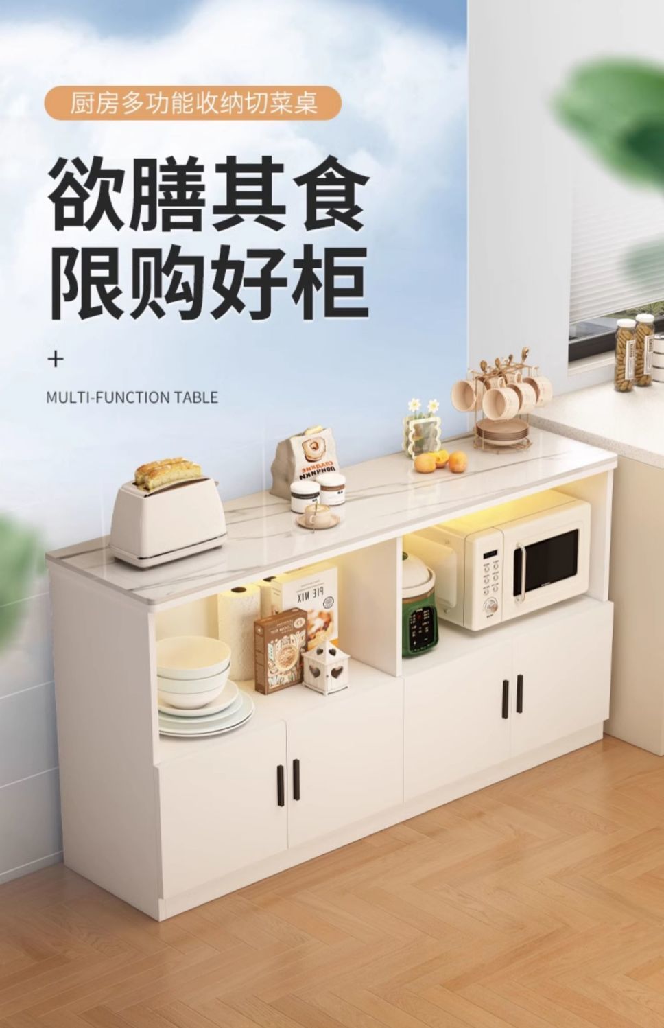 J^슬레이트 주방 선반 수납 캐비닛 야채 절단 테이블 전자 레인지 수납 선반 다층 바닥에서 천장까지 가정용 수납 캐비닛