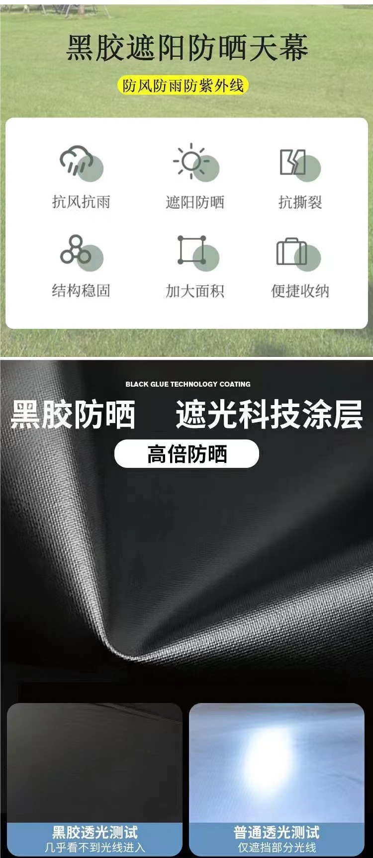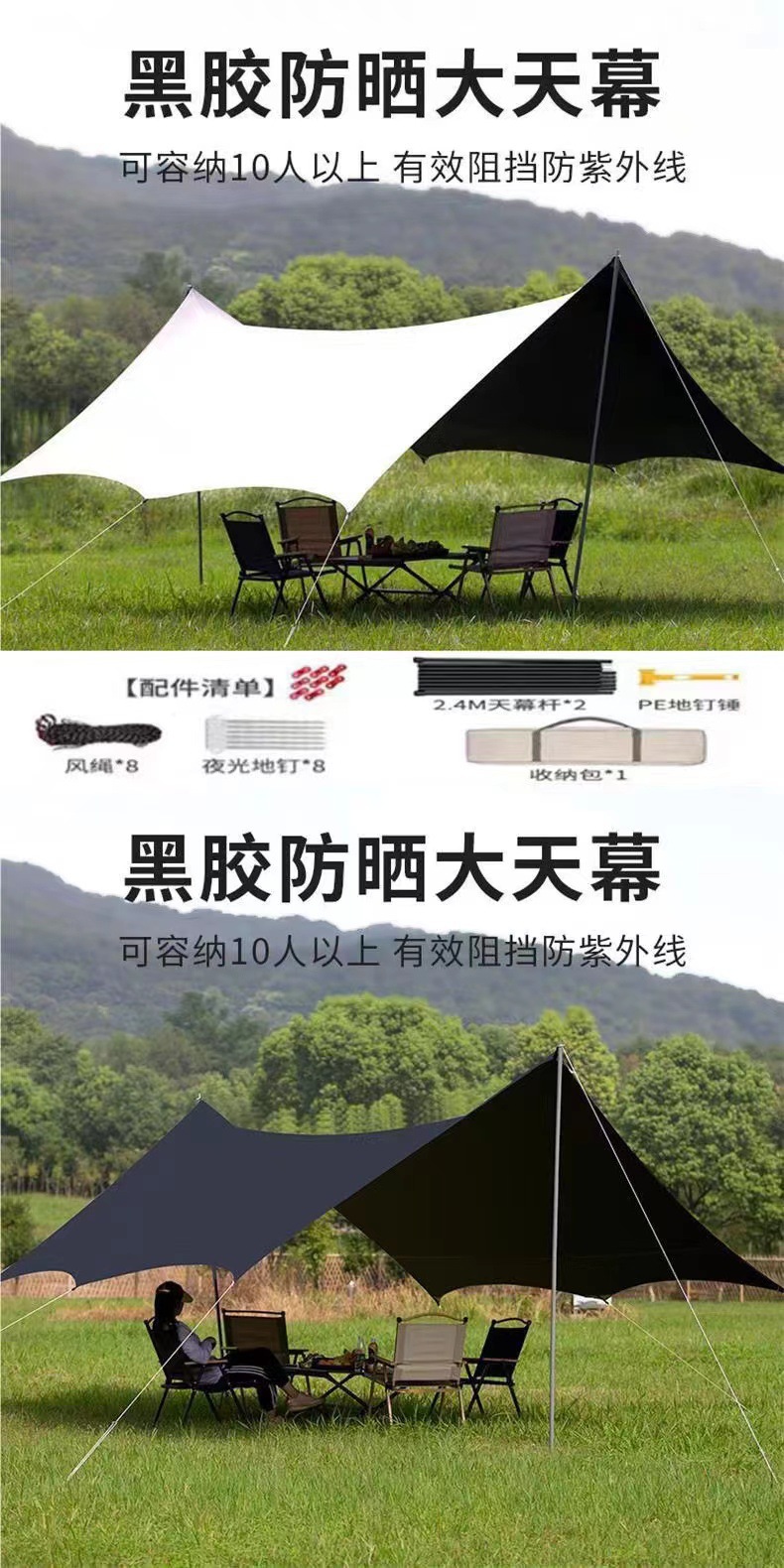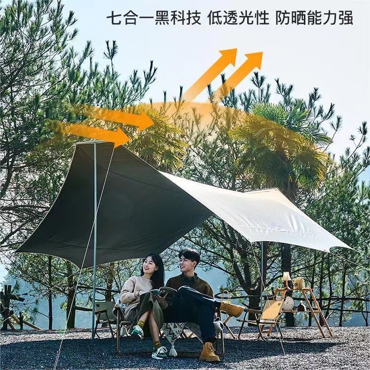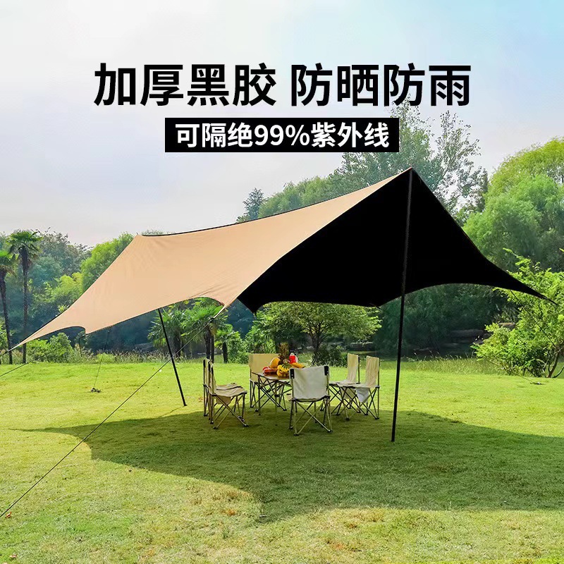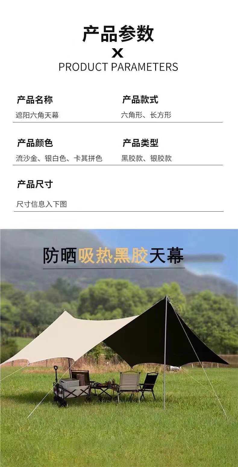 햇빛 차단 캠핑 비닐 피쉬 캐노피 텐트 육각형 여행층은 은색으로 코팅되어 있습니다. 팔각형 두꺼운 피크닉 야외 자외선 차단제