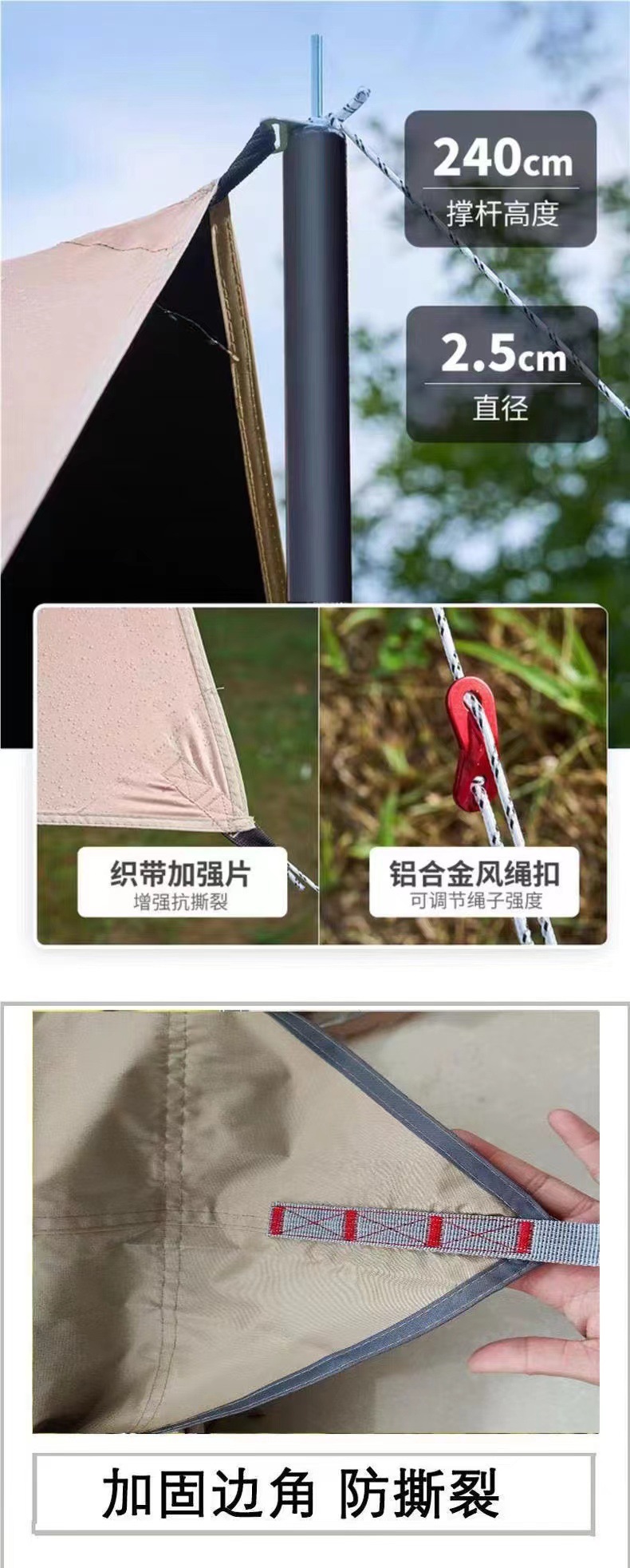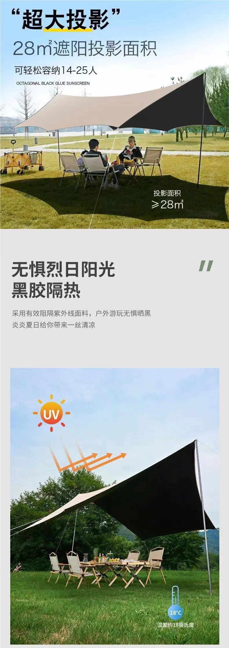 햇빛 차단 캠핑 비닐 피쉬 캐노피 텐트 육각형 여행층은 은색으로 코팅되어 있습니다. 팔각형 두꺼운 피크닉 야외 자외선 차단제스토어 가기
