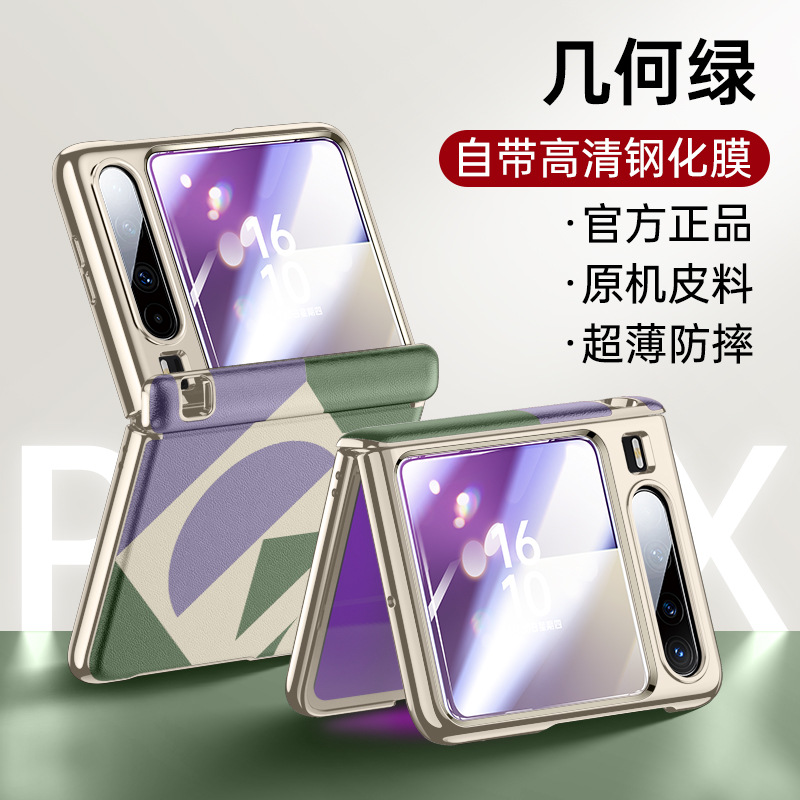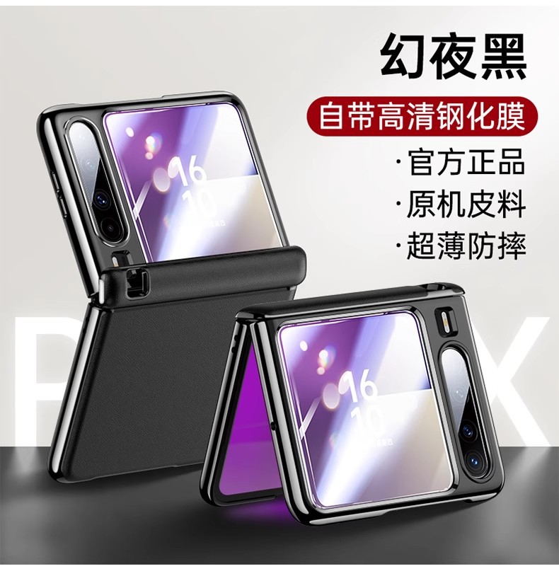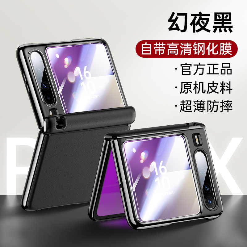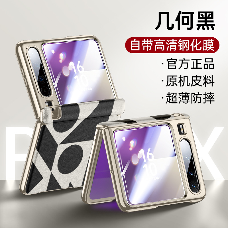 Huawei Pura X 접이식 휴대폰 케이스에 적합 Pura X 일반 가죽 중앙 축 쉘 필름 일체형 일체형 낙하 방지 보호 커버스토어 가기
