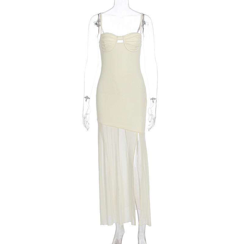 국경을 넘는 유럽과 미국 스타일 2025 여름 새로운 여성 패션 섹시한 V 넥 백리스 슬림 스플릿 스트랩 원피스스토어 가기