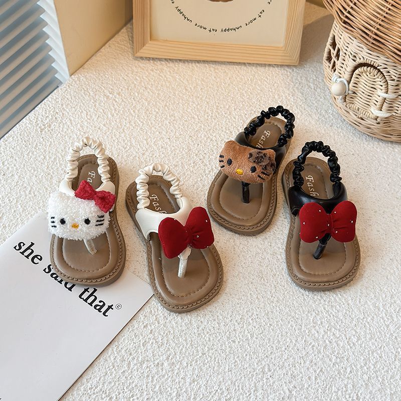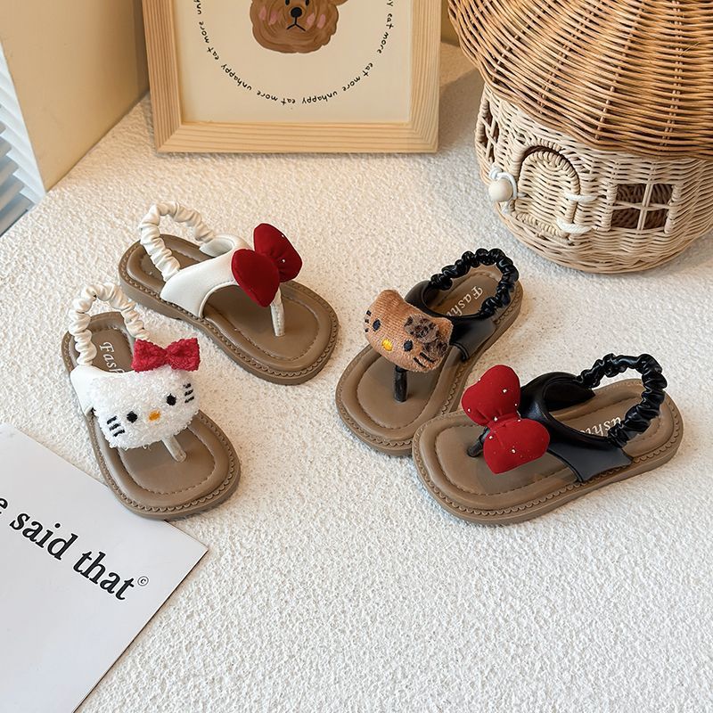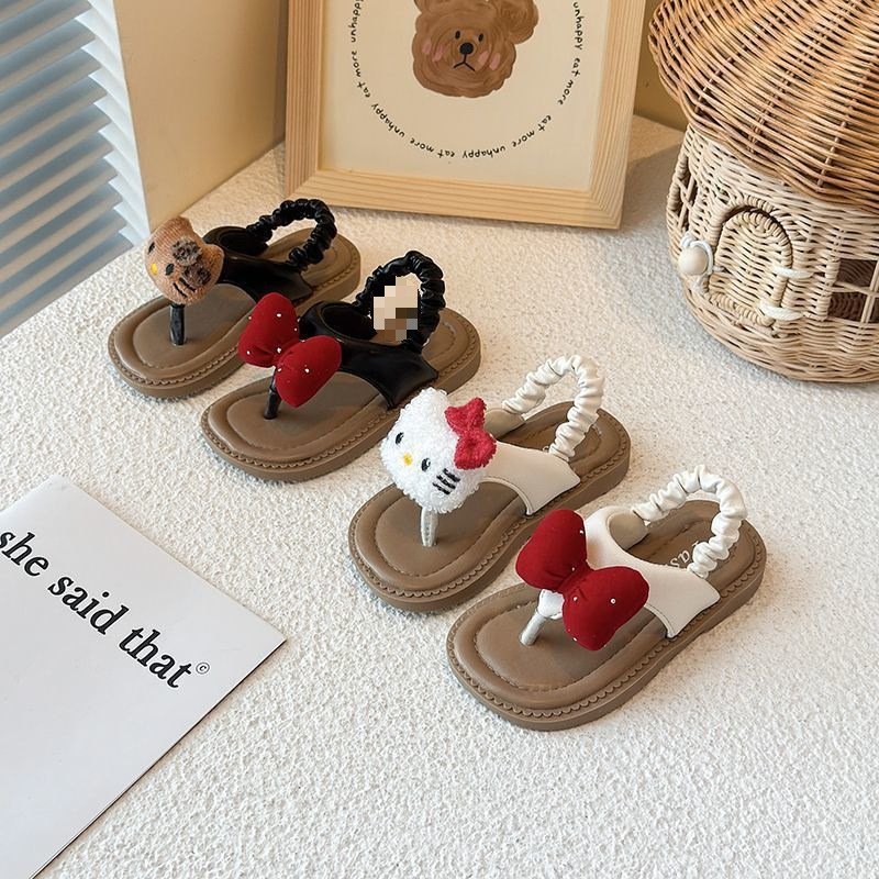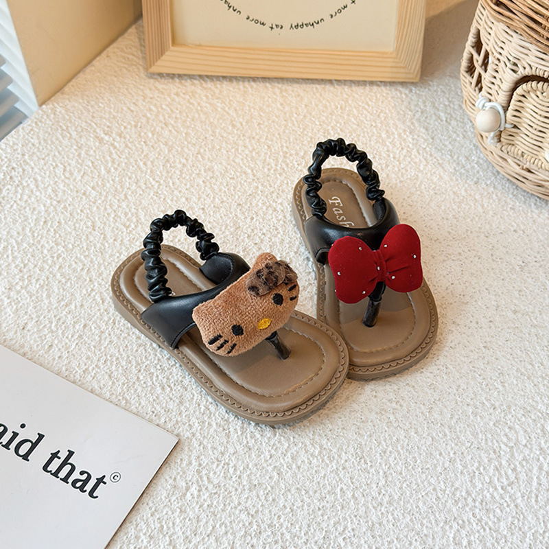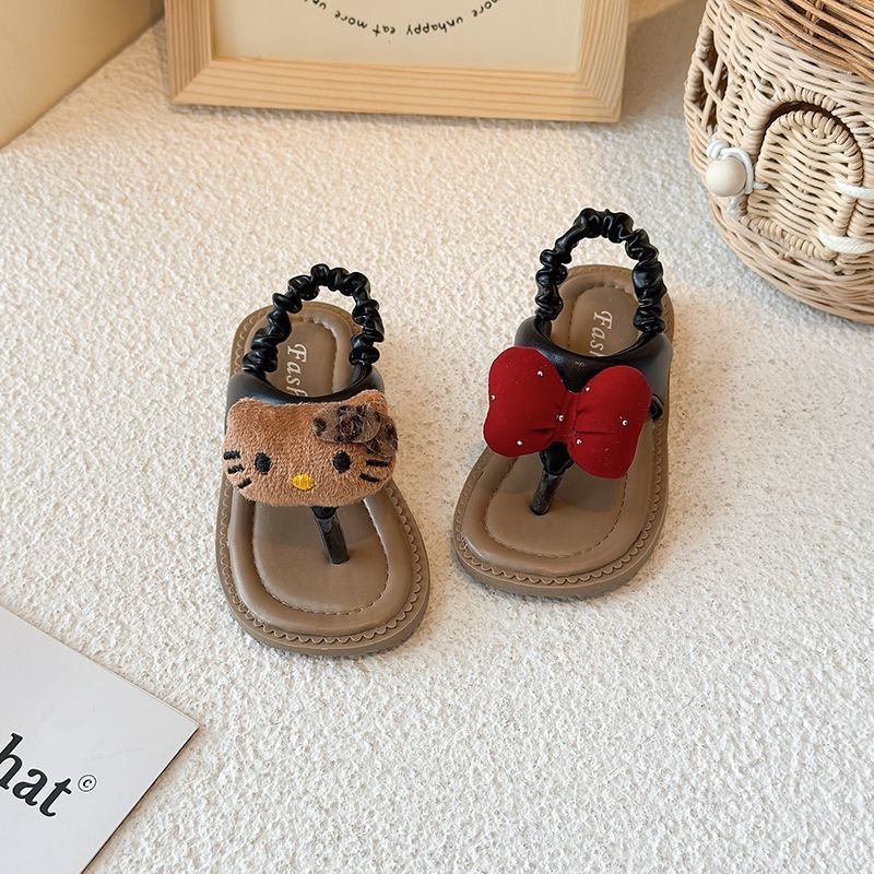 여자 샌들, 비치 샌들, 아기 귀여운 만화 헤링본 샌들, 미끄럼 방지 부드러운 밑창 샌들