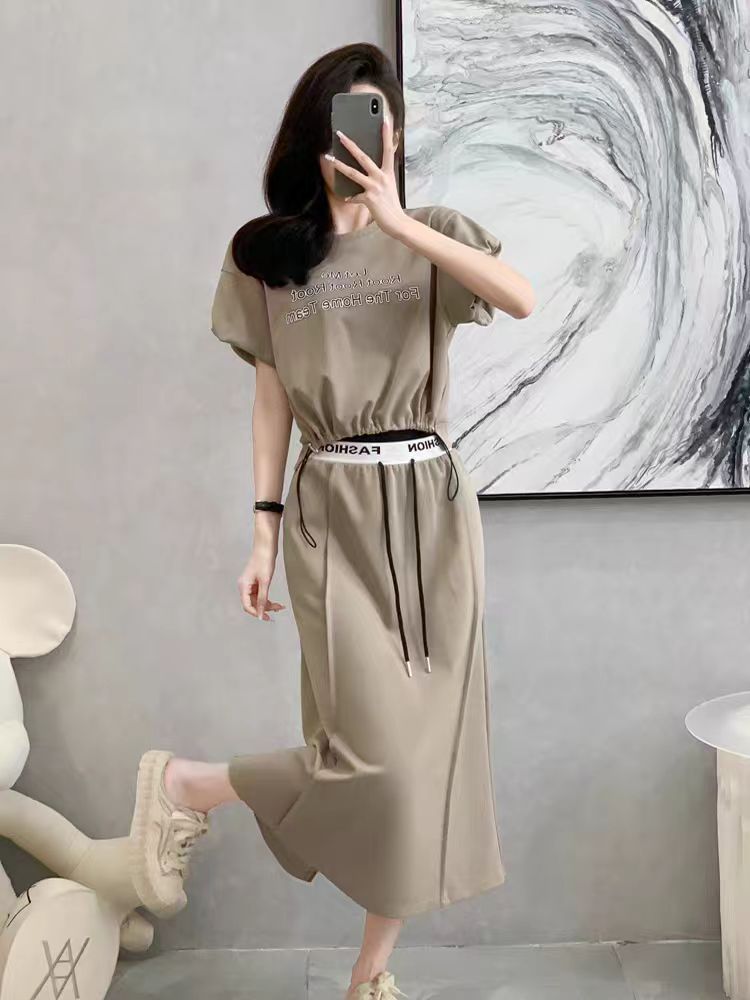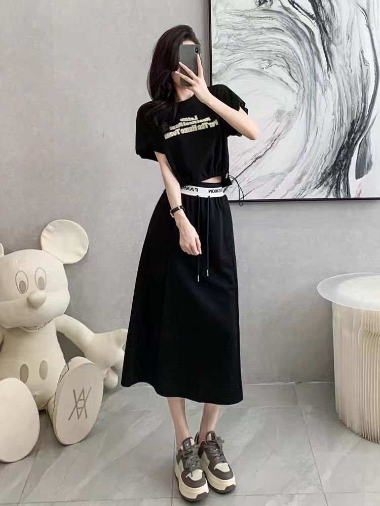 여름 여성을 위한 새로운 한국 스타일 스포츠 슈트 스커트, 고급, 연령 감소, 패셔너블, 캐주얼 반팔 스커트, 투피스 트렌디 세트스토어 가기