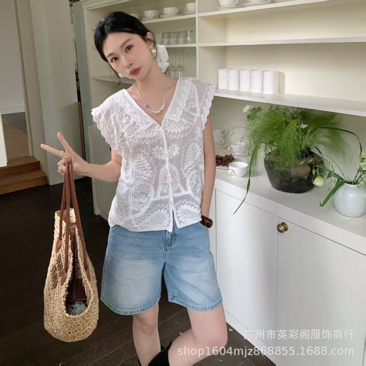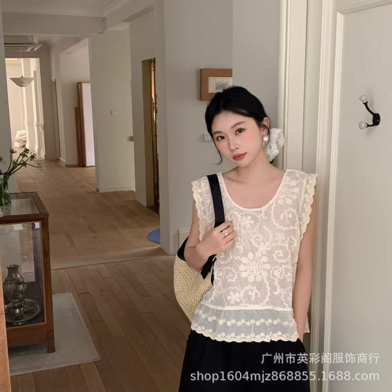 여성을위한 하이 엔드 기질 중공 크로 셰 뜨개질 v 조끼 여름 얇은 스타일 민소매 자수 조끼 카디건 탑 여성용스토어 가기