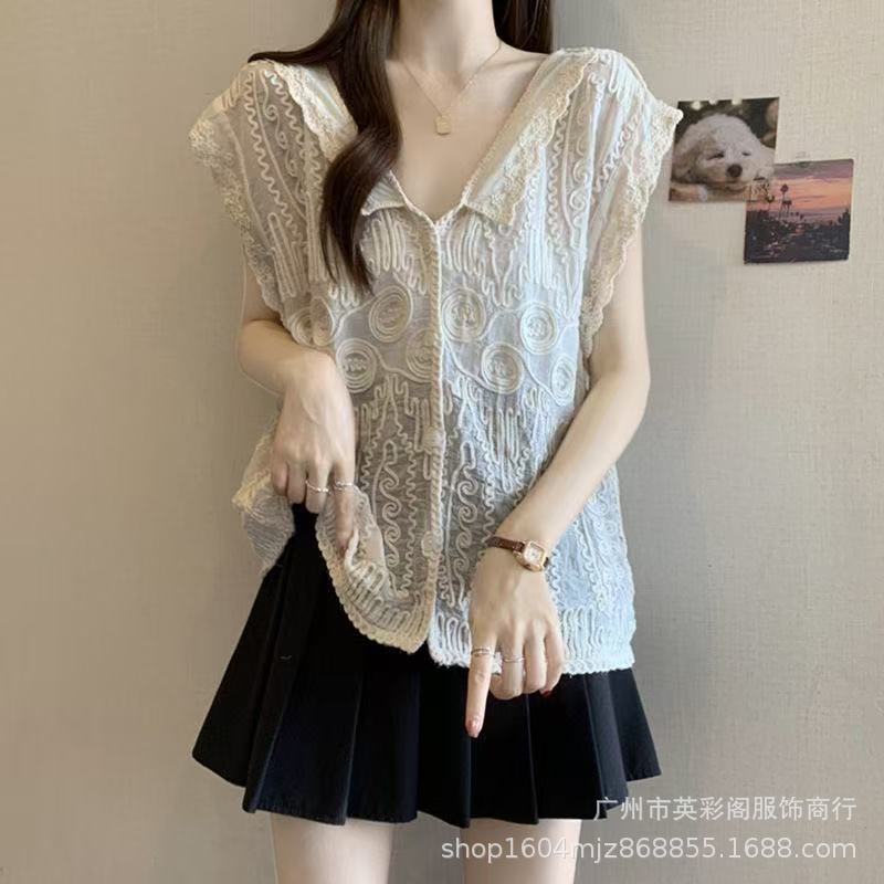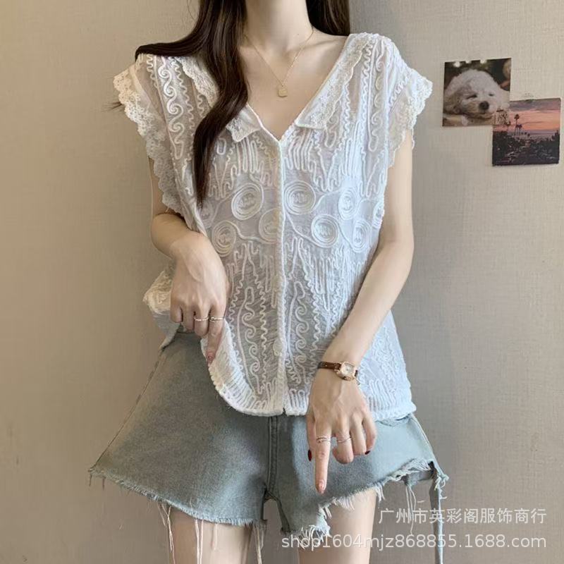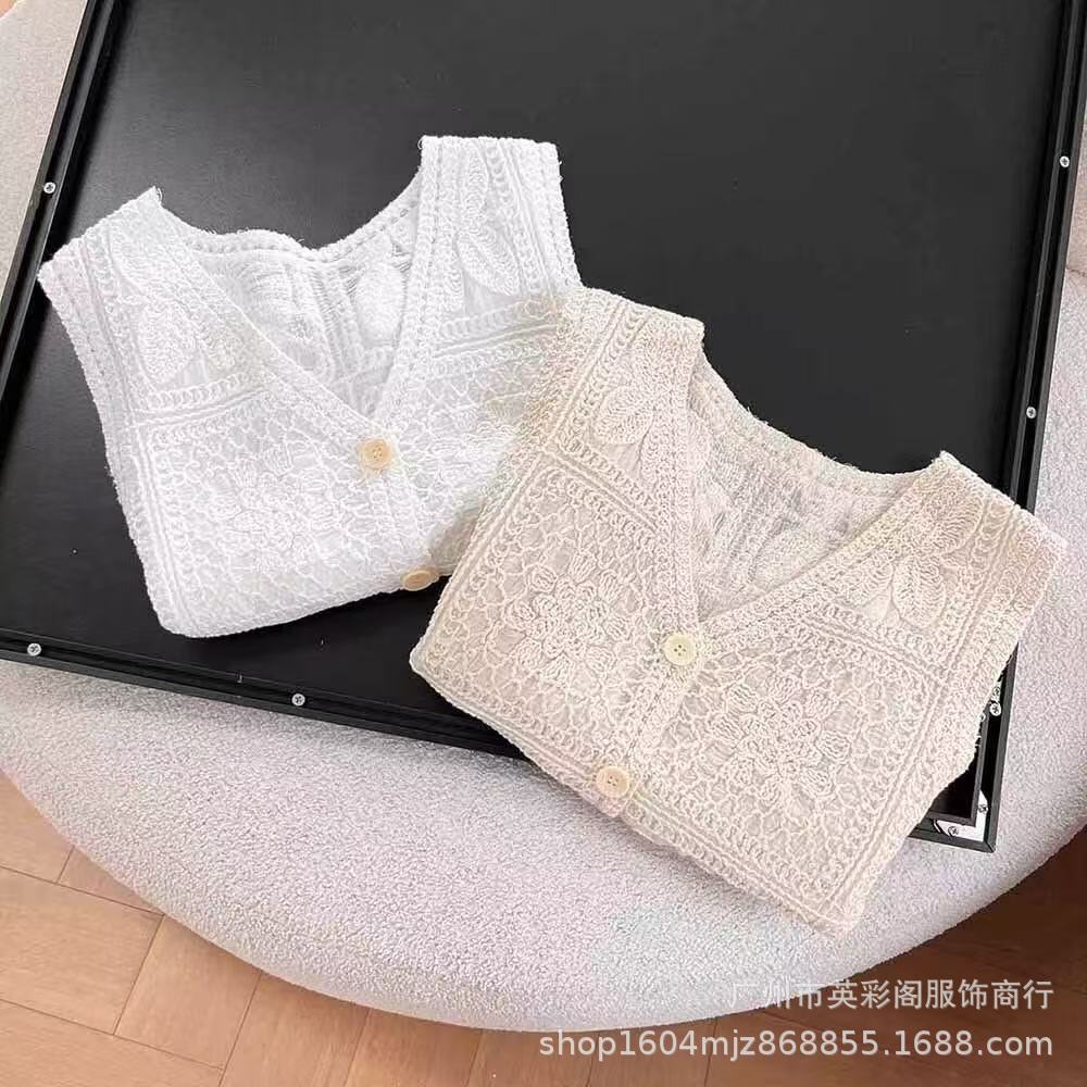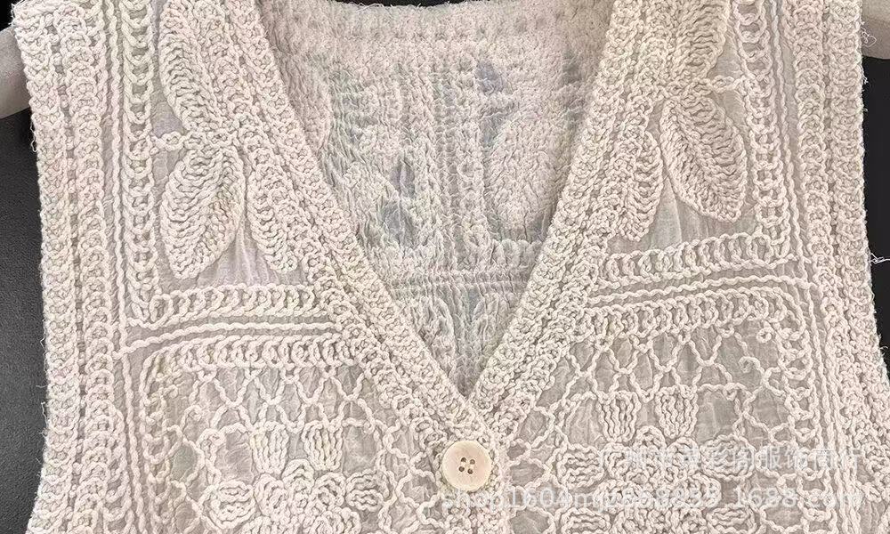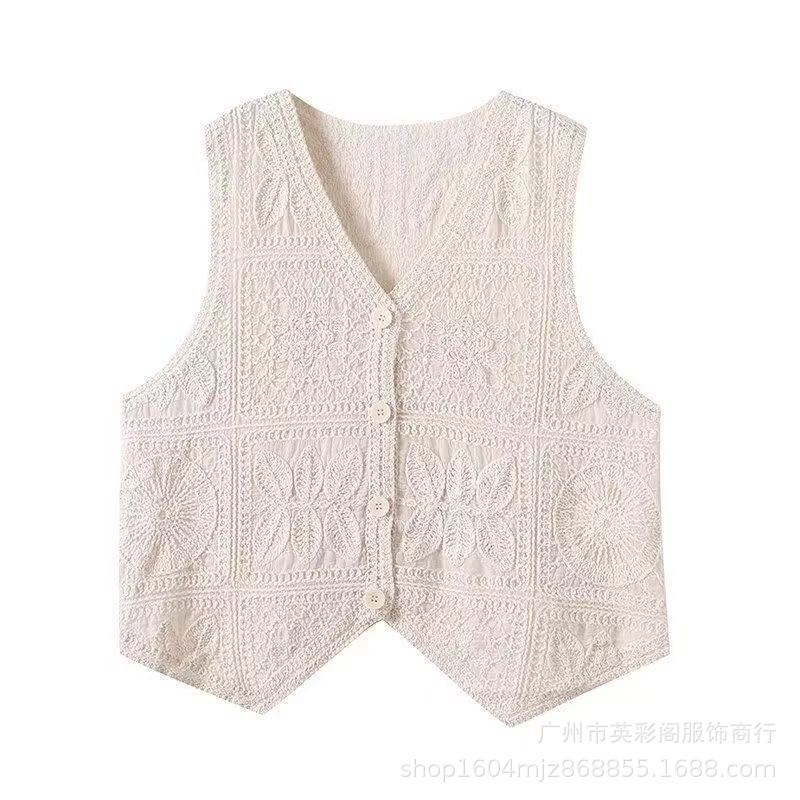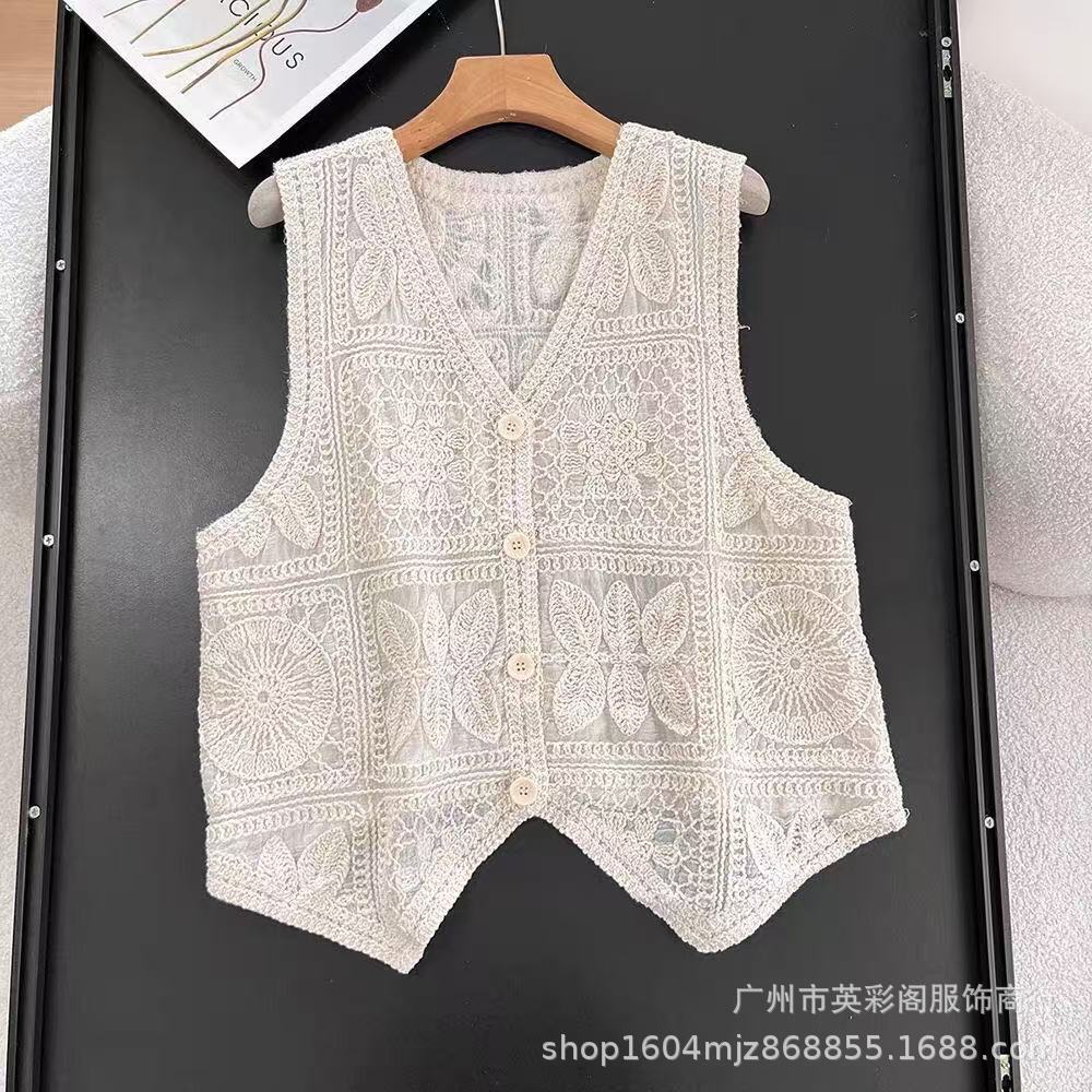 여성을위한 하이 엔드 기질 중공 크로 셰 뜨개질 v 조끼 여름 얇은 스타일 민소매 자수 조끼 카디건 탑 여성용