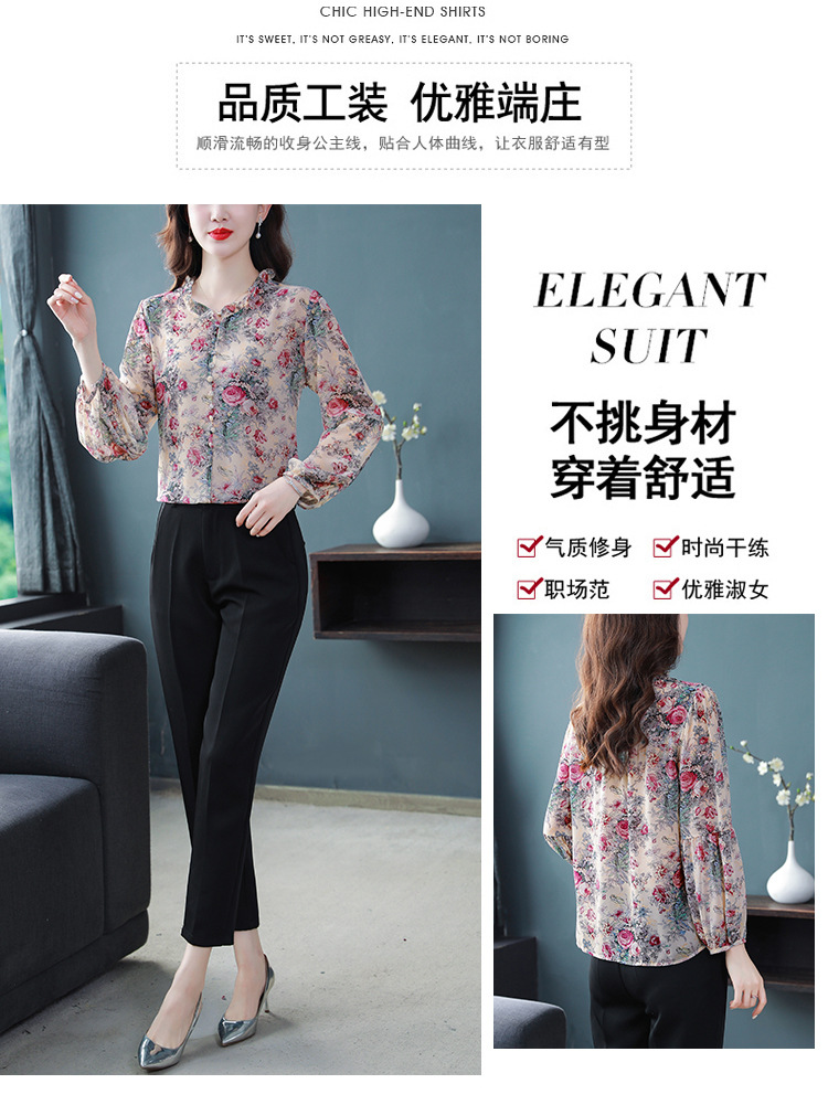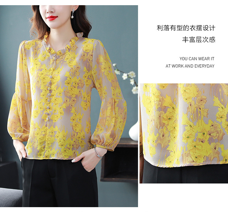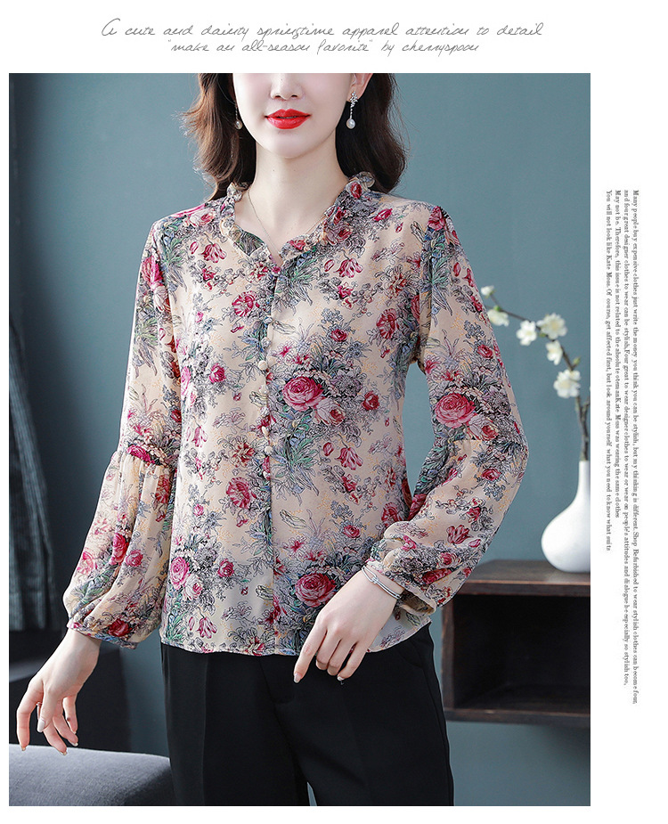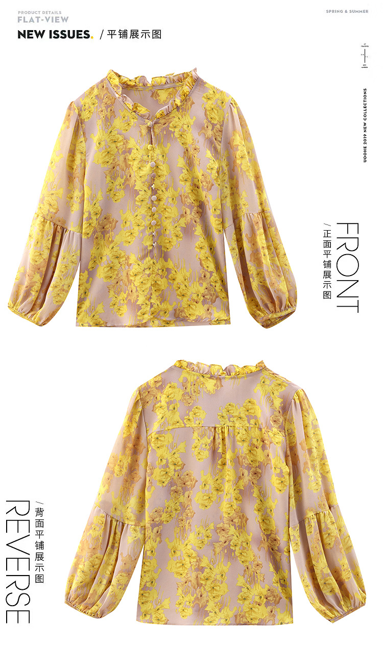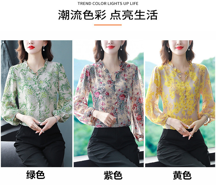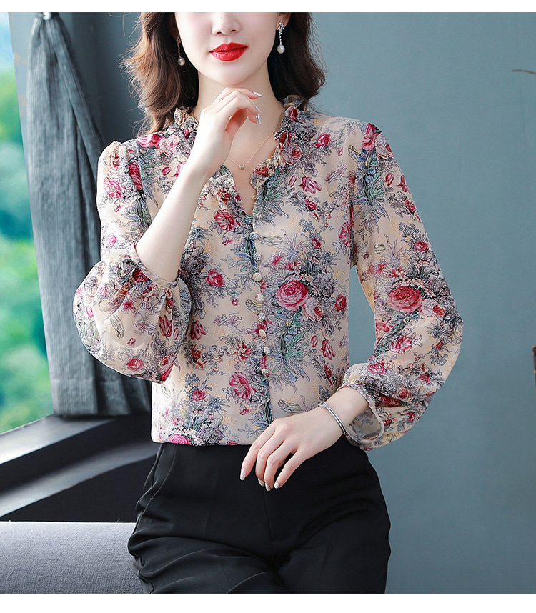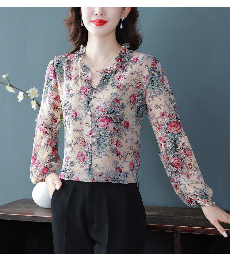 2023 봄 여름 새로운 한국 스타일 브이넥 9점 랜턴 슬리브 패셔너블한 쉬폰 셔츠 여성용 귀 프린트 풀오버 탑스토어 가기
