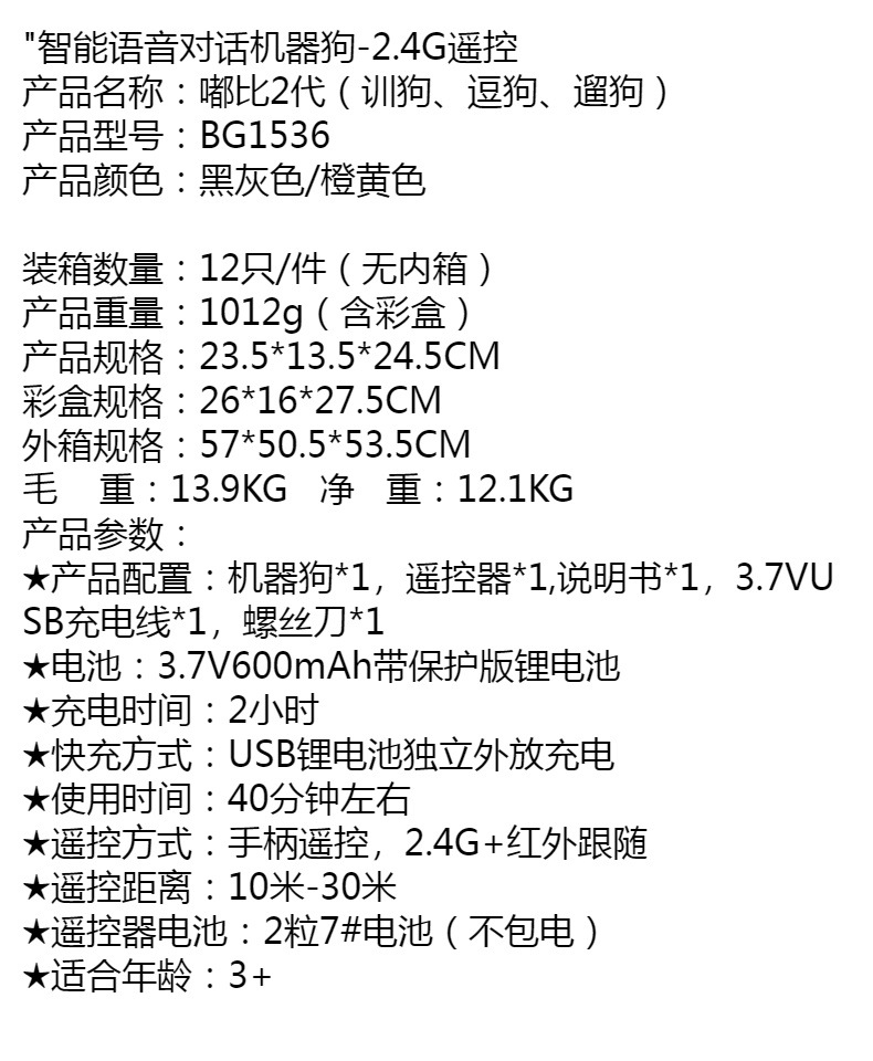 Subo BG1536 전기 원격 제어 지능형 로봇 개 대화 형 동반자 장난감 개 제스처 감지 전자 모델 놀이