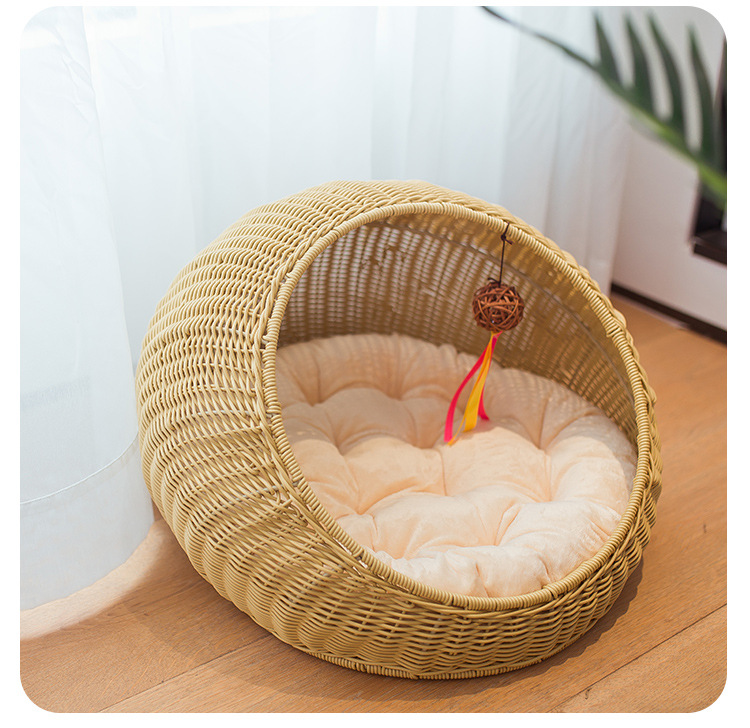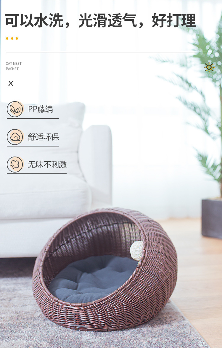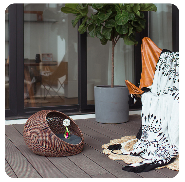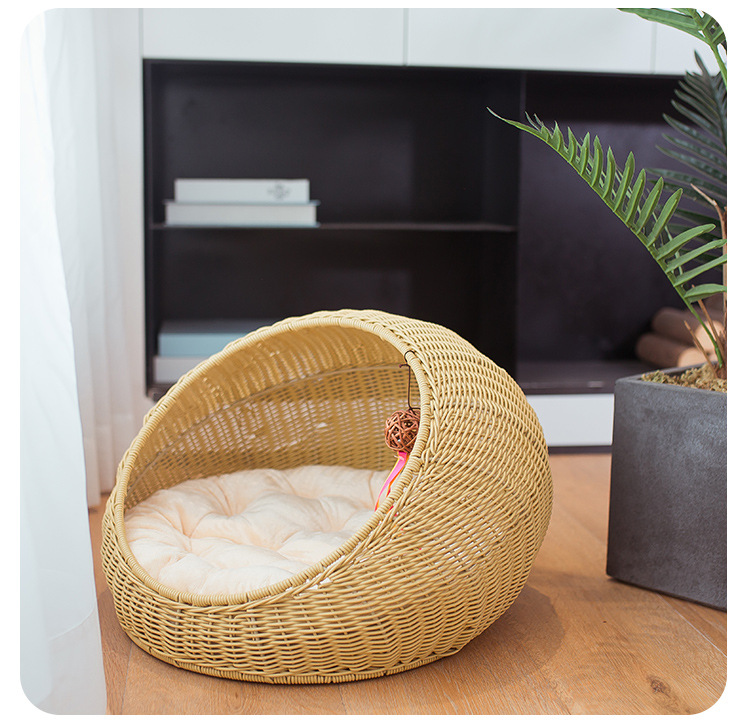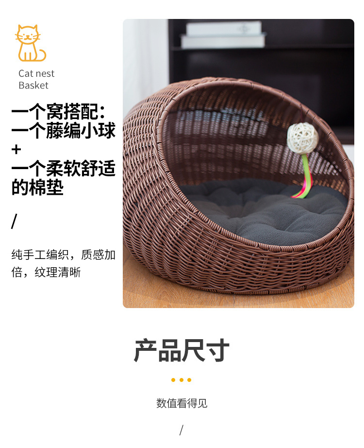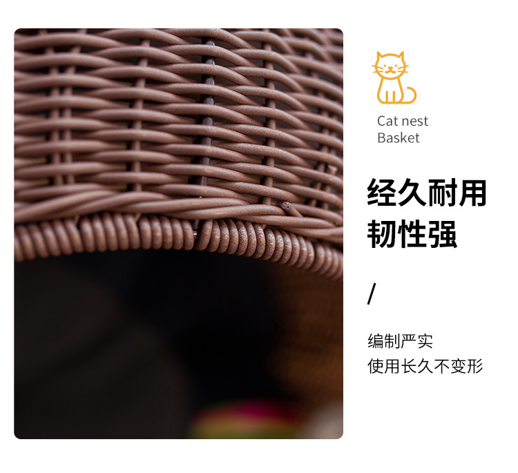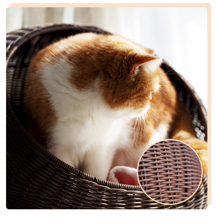 손으로 짠 고양이 케이지, 고양이 애완 동물 둥지, 가을 겨울 따뜻한 매트, 탈부착 및 세탁 가능한 등나무 개집, 고양이 둥지 해먹