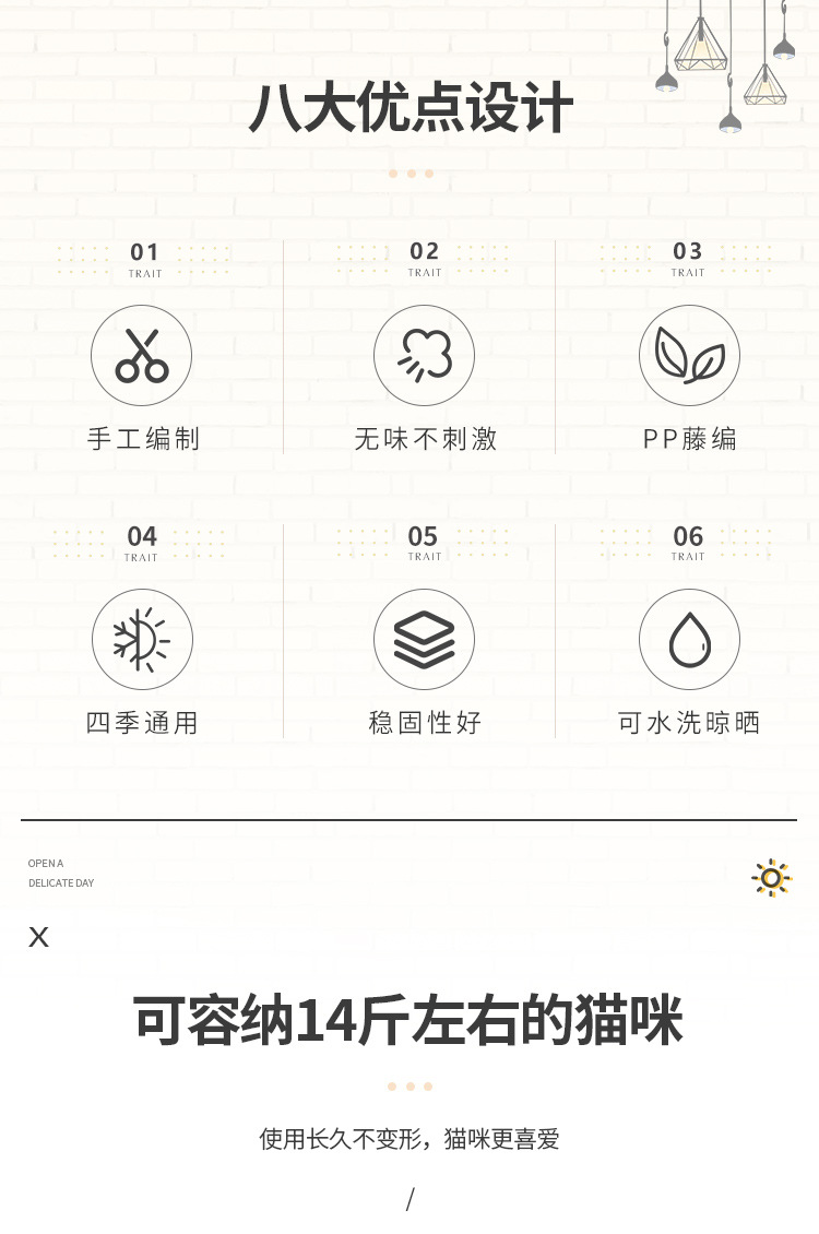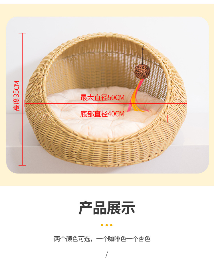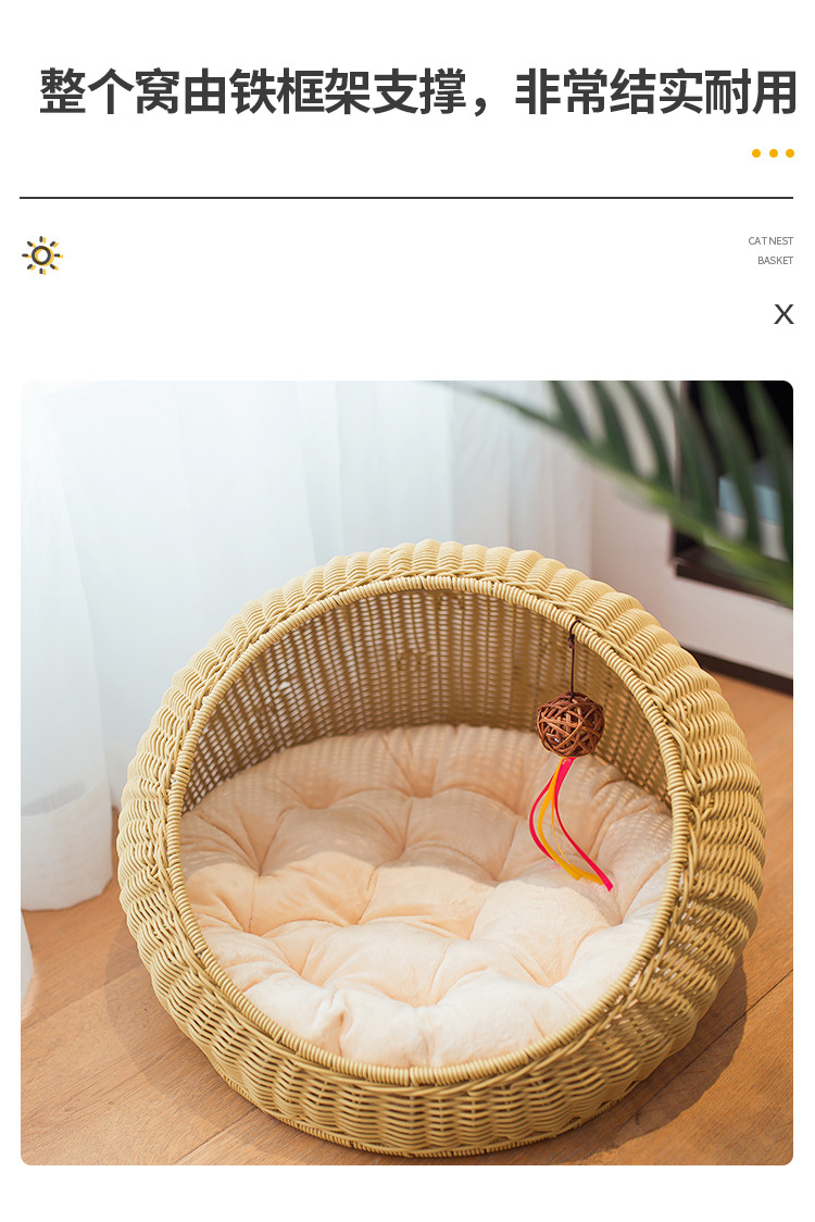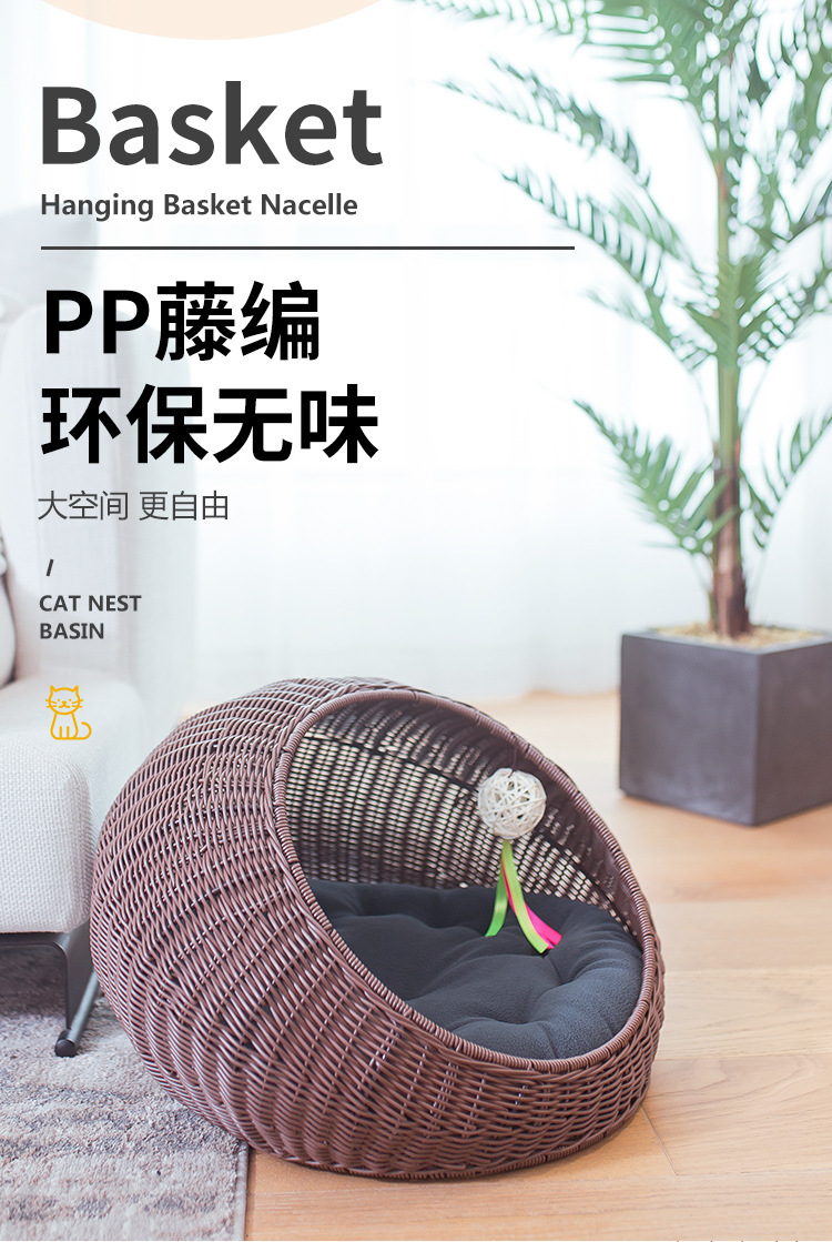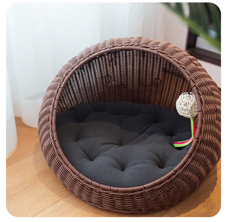 손으로 짠 고양이 케이지, 고양이 애완 동물 둥지, 가을 겨울 따뜻한 매트, 탈부착 및 세탁 가능한 등나무 개집, 고양이 둥지 해먹