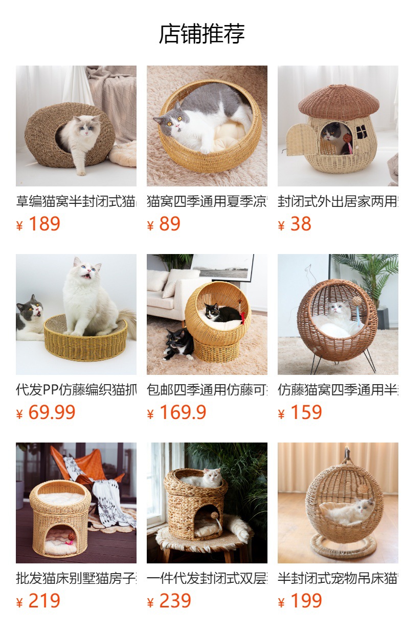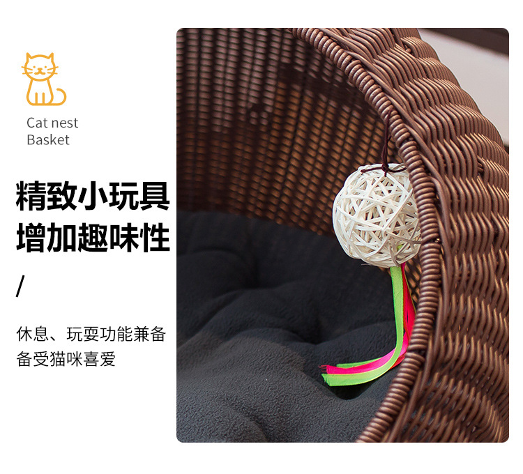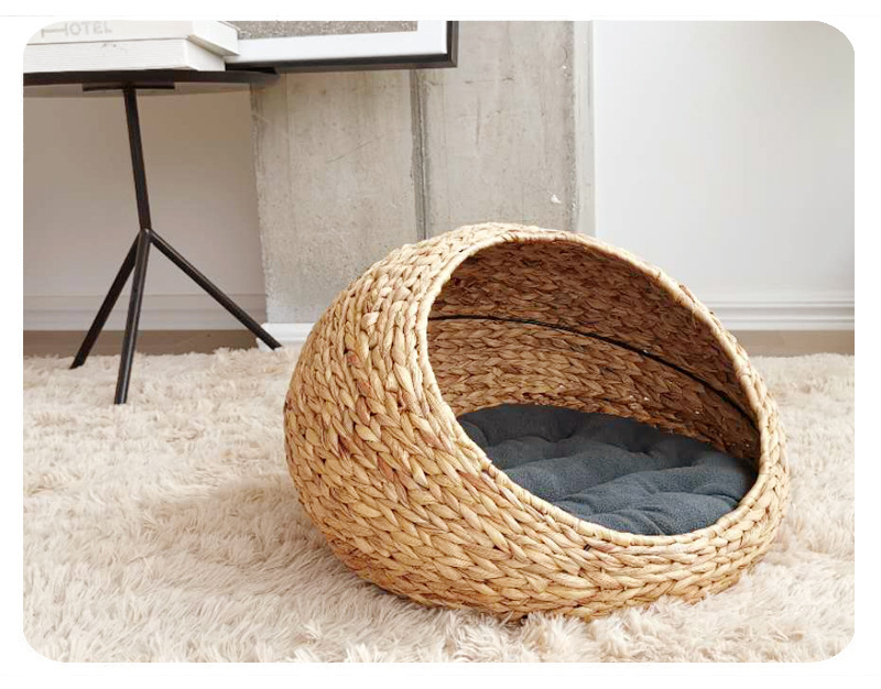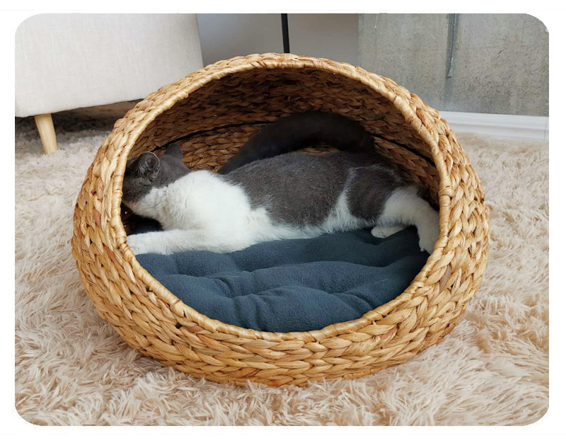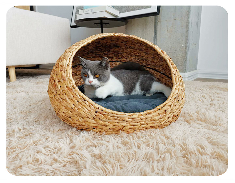 손으로 짠 고양이 케이지, 고양이 애완 동물 둥지, 가을 겨울 따뜻한 매트, 탈부착 및 세탁 가능한 등나무 개집, 고양이 둥지 해먹스토어 가기