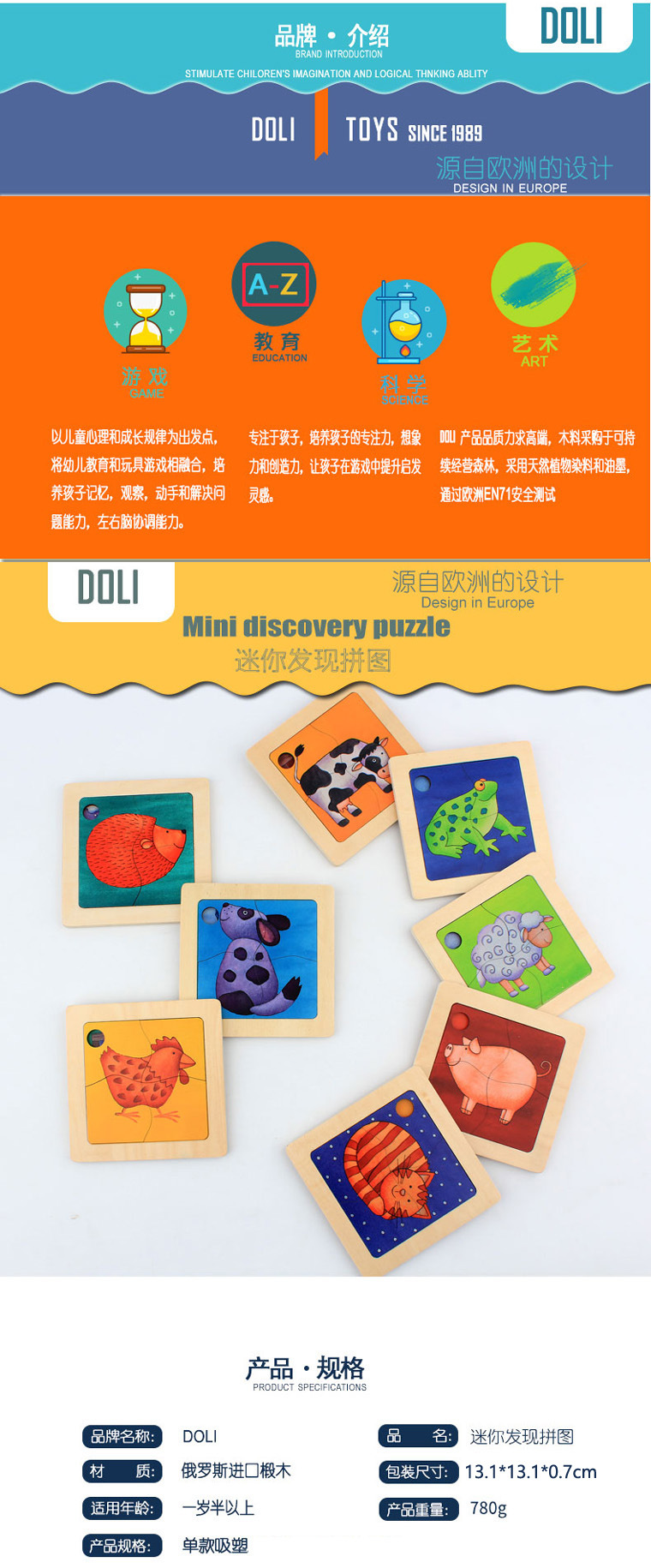 독일로 수출 미니 디스커버리 퍼즐 아기 및 유아 조기 교육 4피스 퍼즐 0-1-2-3세 교육 장난감스토어 가기