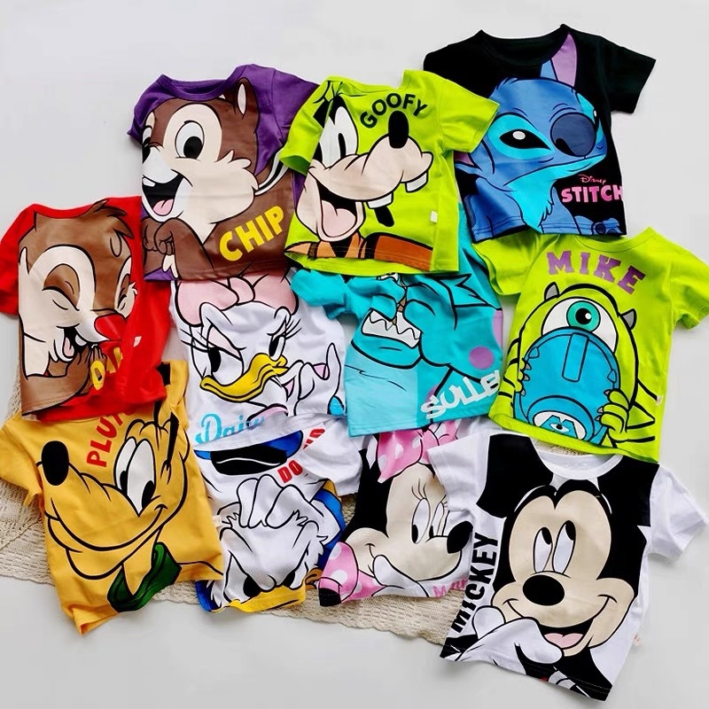 소년과 소녀를위한 한국 스타일 여름 티셔츠 2025 아동 의류 새로운 스타일 중소 어린이 만화 반팔 여름 의류 유행 프린트 티셔츠스토어 가기