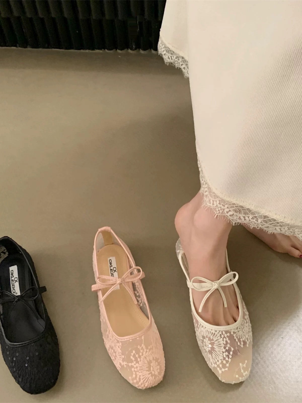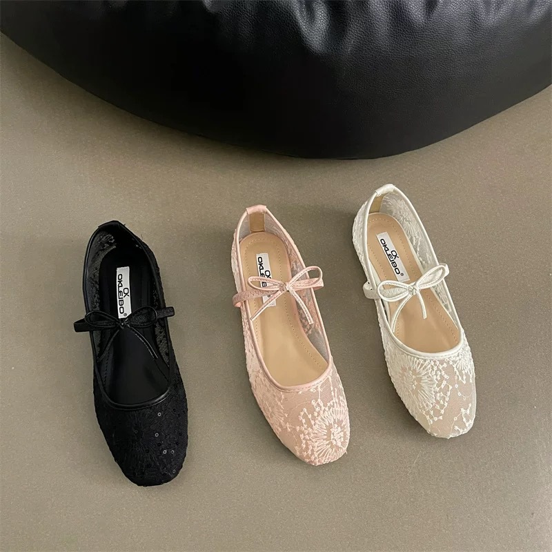 메쉬 보우 요정 신발 여성 신발 2025 새로운 봄, 여름 플랫 메쉬 통기성 펌프 메리 제인 신발스토어 가기