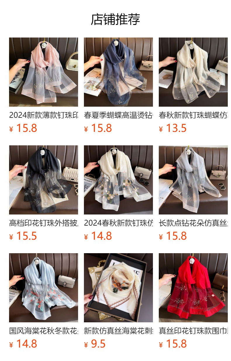 봄과 가을 새로운 스타일의 구슬 장식 나비 시뮬레이션 실크 스카프, 여성스럽고 다재다능한 오간자 구슬 장식 실크 스카프스토어 가기
