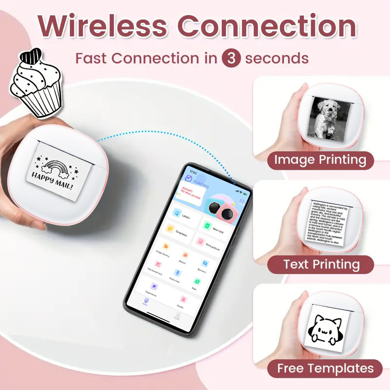 跨境新款迷你便携式口袋错题打印机学生标签图片蓝牙热敏打印机