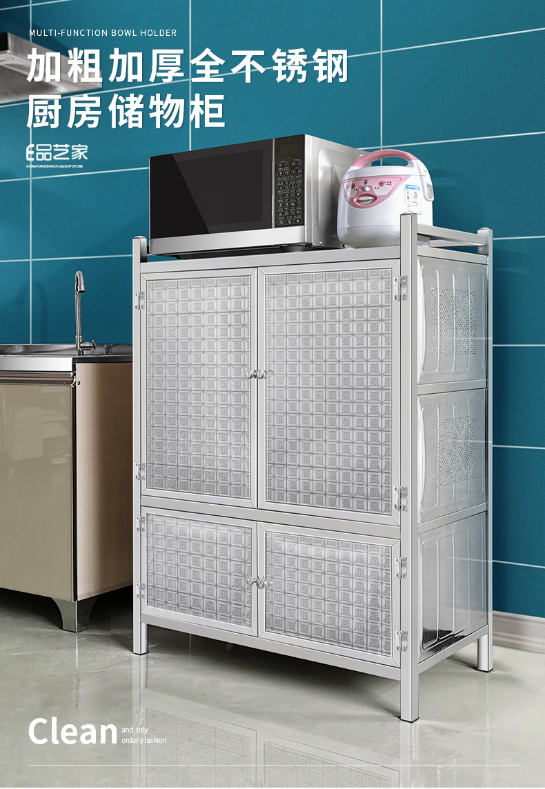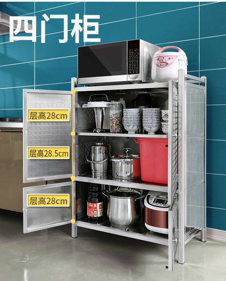 완전 스테인레스 스틸 찬장 주방 캐비닛 가정용 경제적 인 간단한 보관 캐비닛 간단한 다층 보관 캐비닛스토어 가기