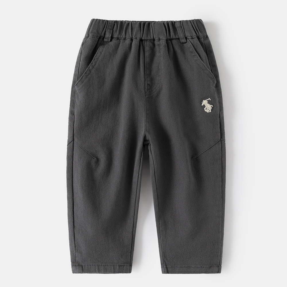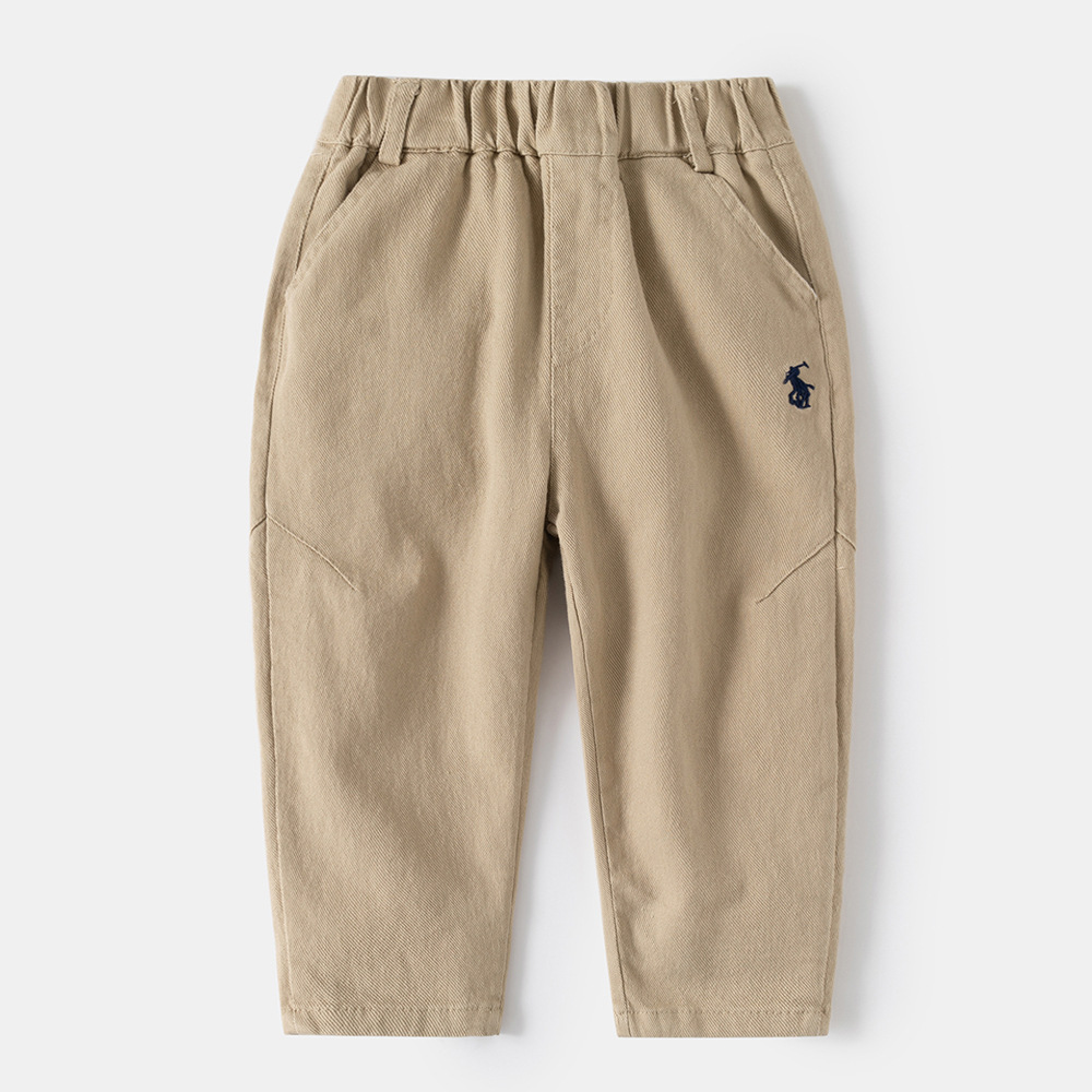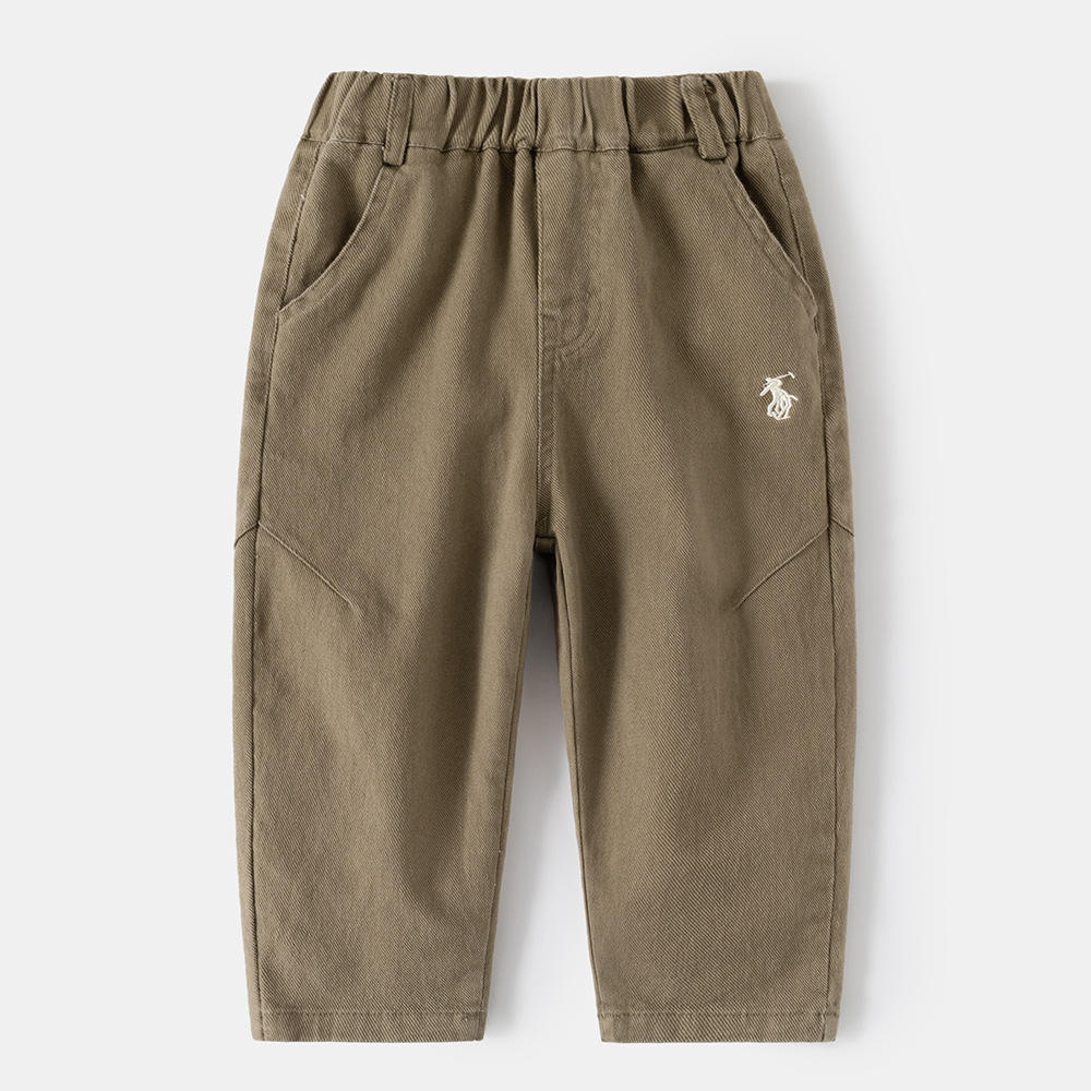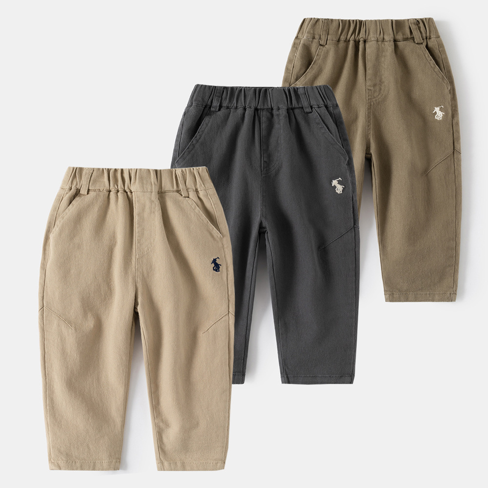 소년 바지 2025 봄 새로운 바지 중형 및 대형 아동용 베이비 스트레이트 바지 아동용 자수 캐주얼 바지