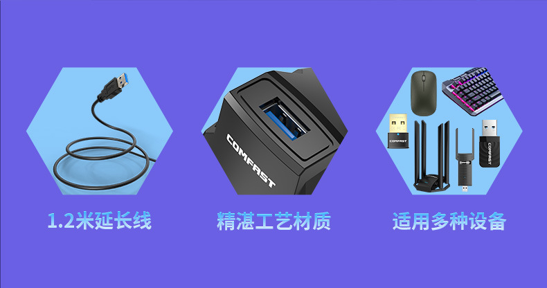 COMFAST CF-U318 1.2 m 고속 USB3.0 기본 컴퓨터 U 디스크 마우스가있는 남녀 연장 코드스토어 가기