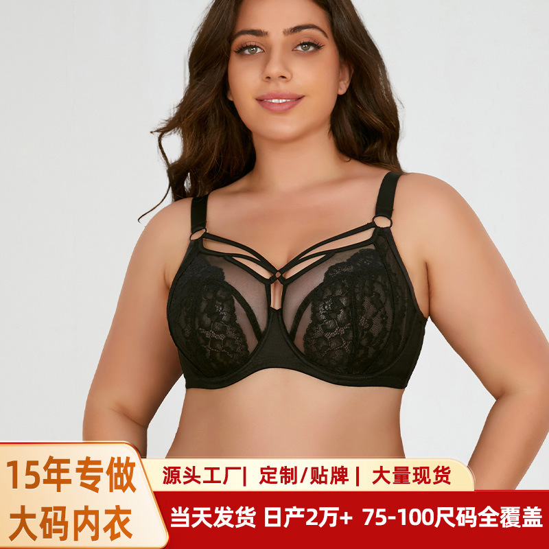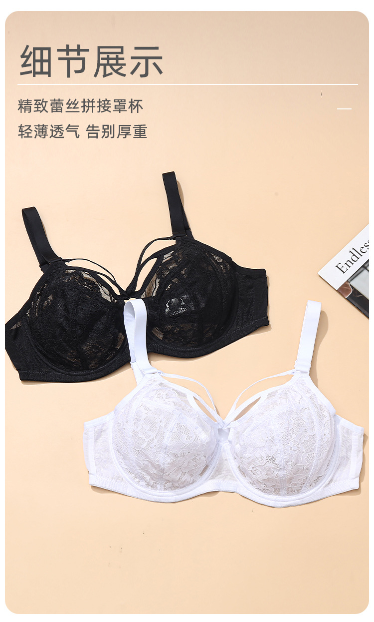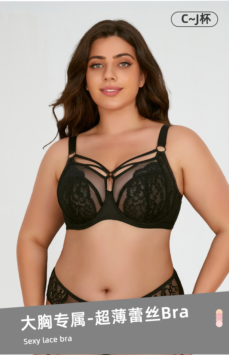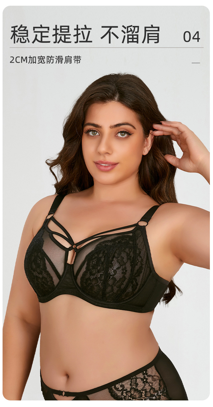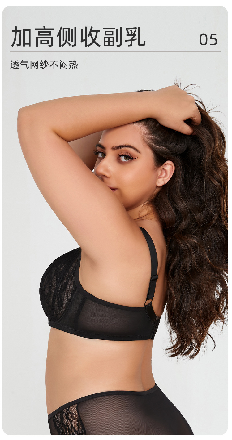 큰 가슴을 가진 여성을 위한 크로스보더 플러스 사이즈 속옷, 작은 레이스 처짐 방지 푸시업 통기성 얇은 풀컵 뚱뚱한 MM 브라스토어 가기