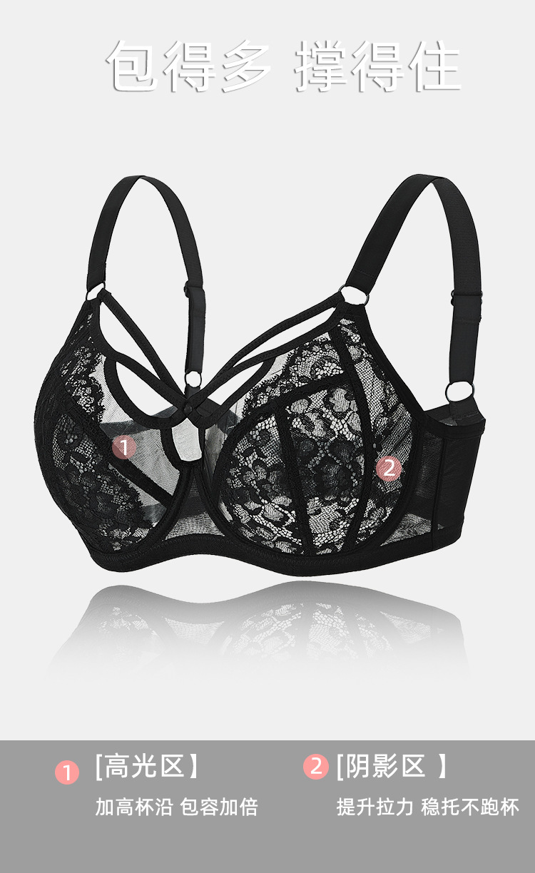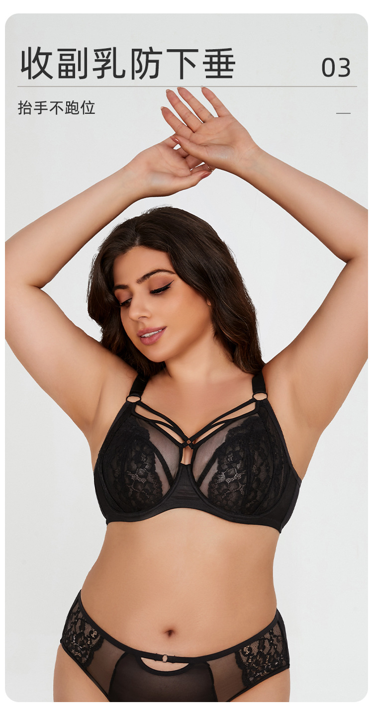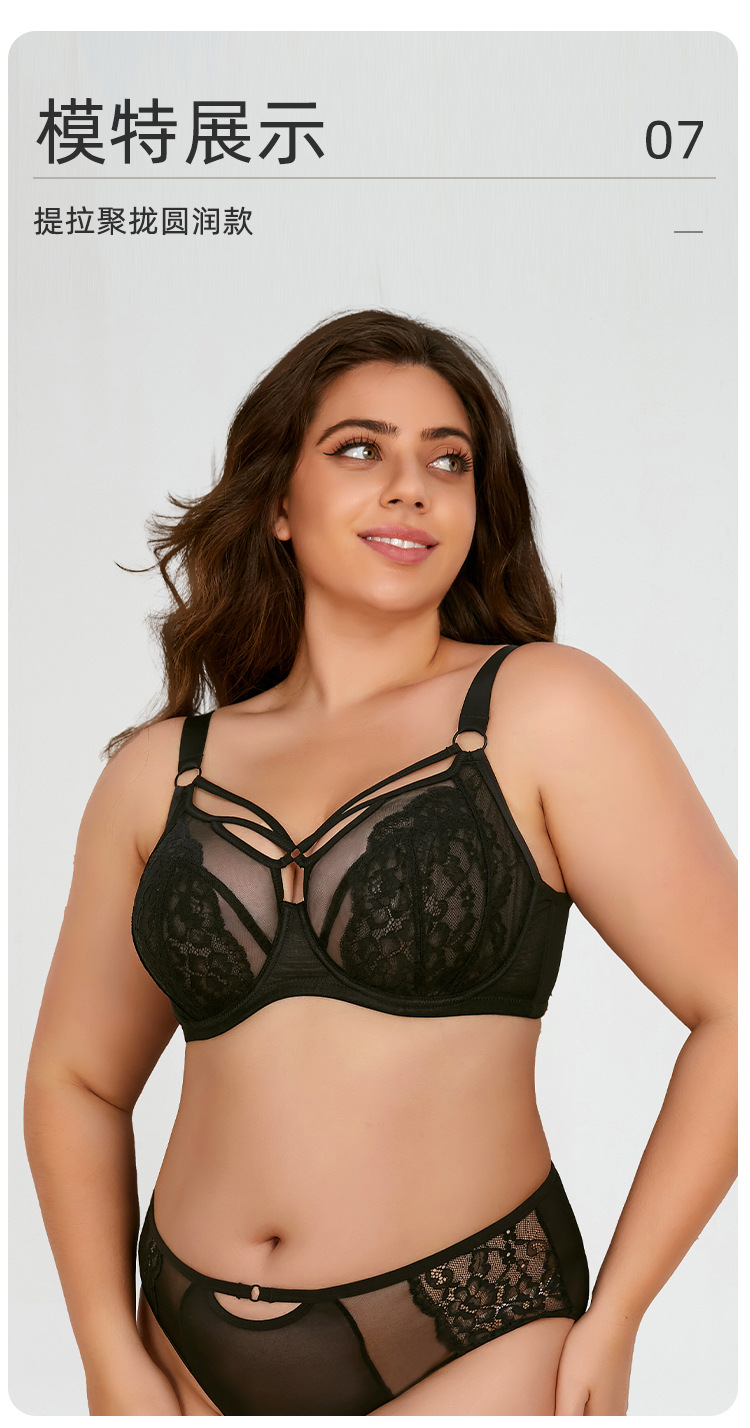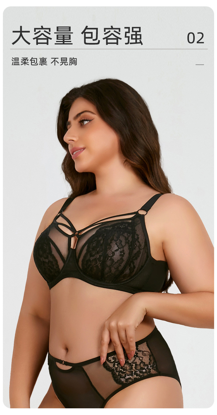 큰 가슴을 가진 여성을 위한 크로스보더 플러스 사이즈 속옷, 작은 레이스 처짐 방지 푸시업 통기성 얇은 풀컵 뚱뚱한 MM 브라스토어 가기