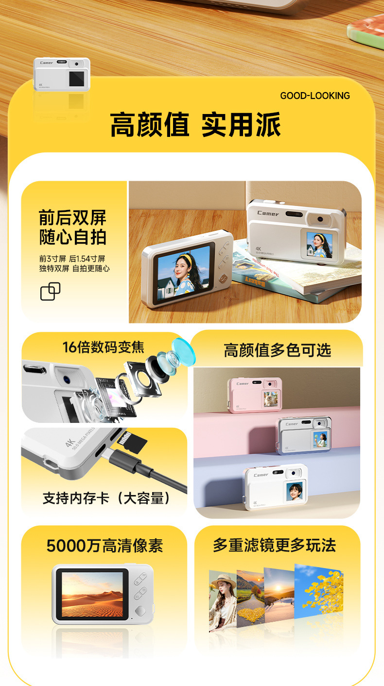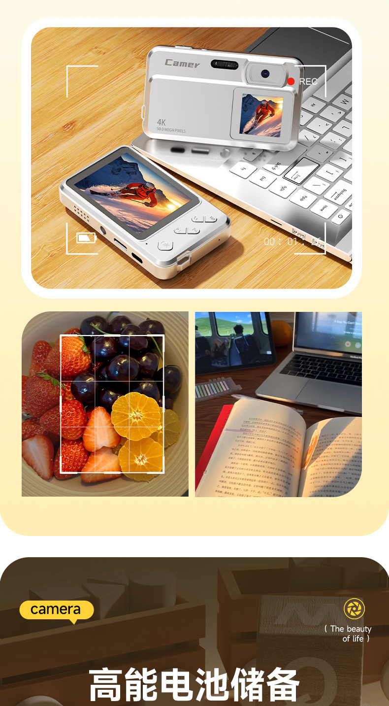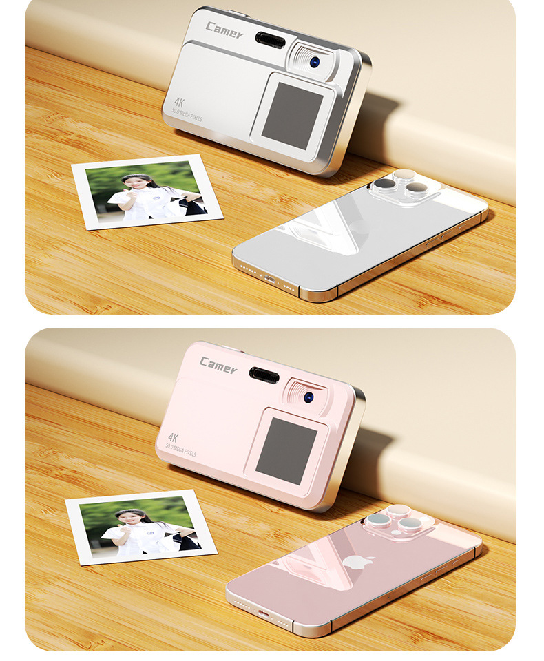 고화질 듀얼 카메라 디지털 카메라 와이파이 휴대 전화 4K 사진 휴대용 휴대용 포켓 카드 기계