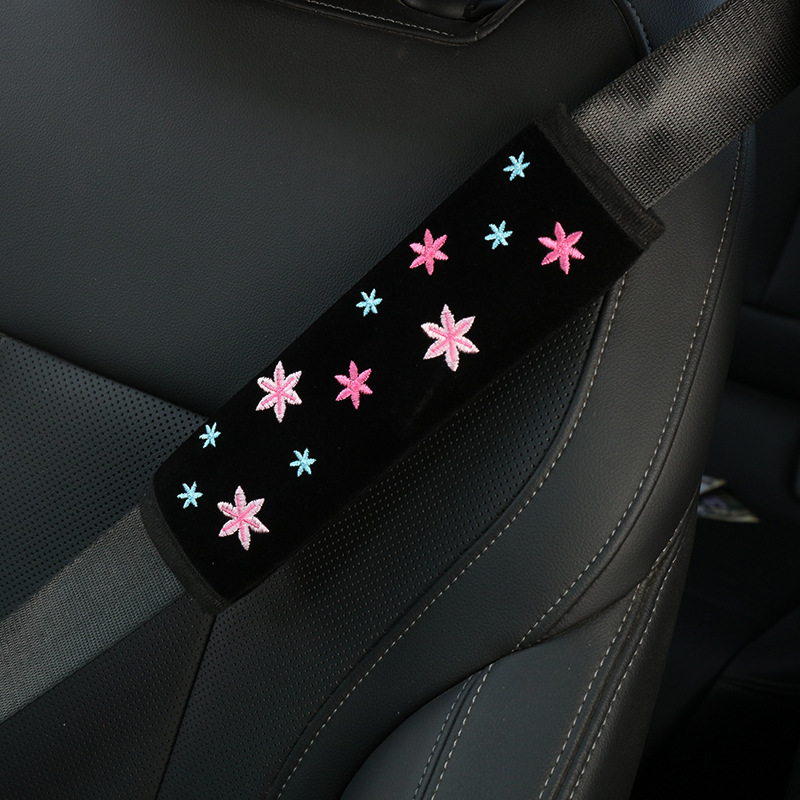 국경 간 자수 자동차 스티어링 휠 팔걸이 상자 안전 벨트 3 피스 세트 맞춤형 창조적 인 미끄럼 방지 땀 흡수 핸들 커버 도매