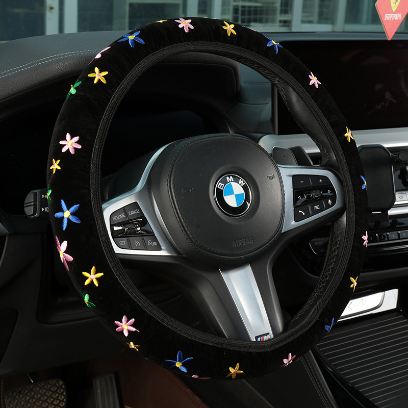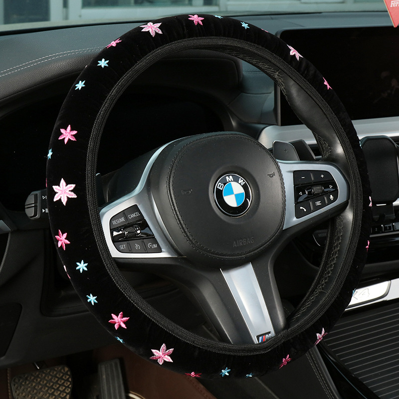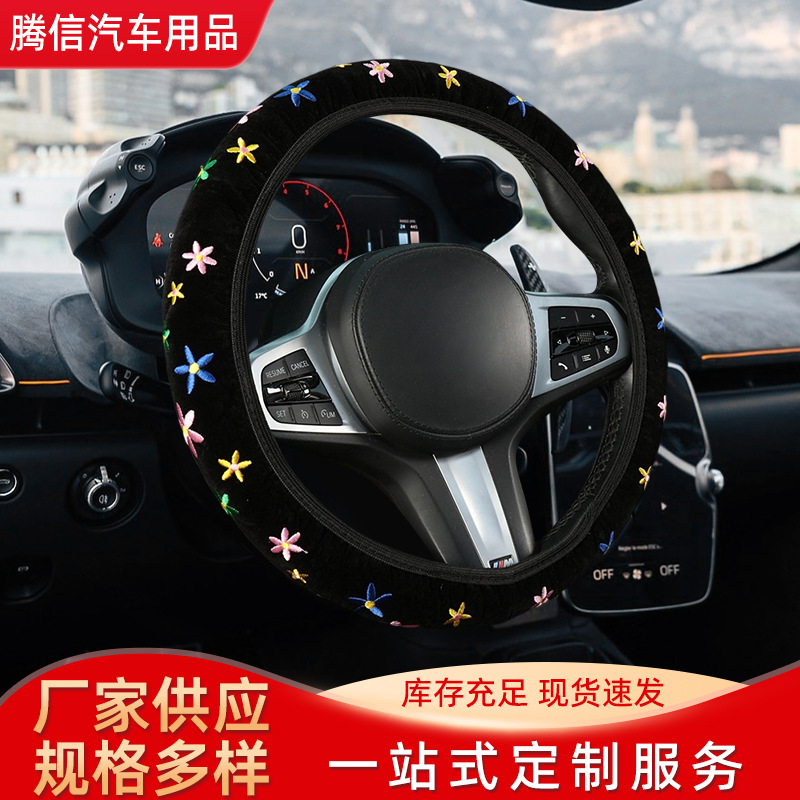 국경 간 자수 자동차 스티어링 휠 팔걸이 상자 안전 벨트 3 피스 세트 맞춤형 창조적 인 미끄럼 방지 땀 흡수 핸들 커버 도매스토어 가기