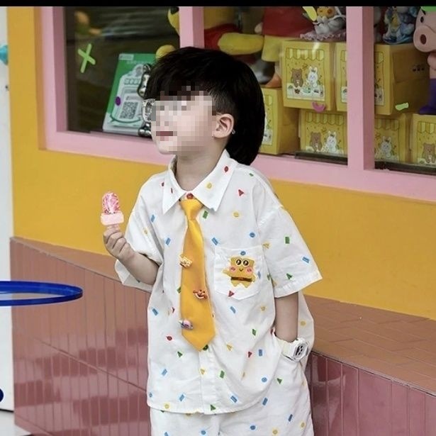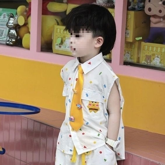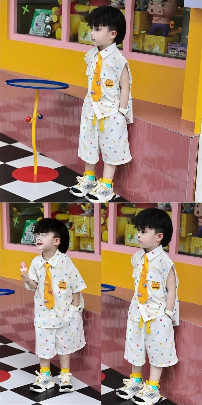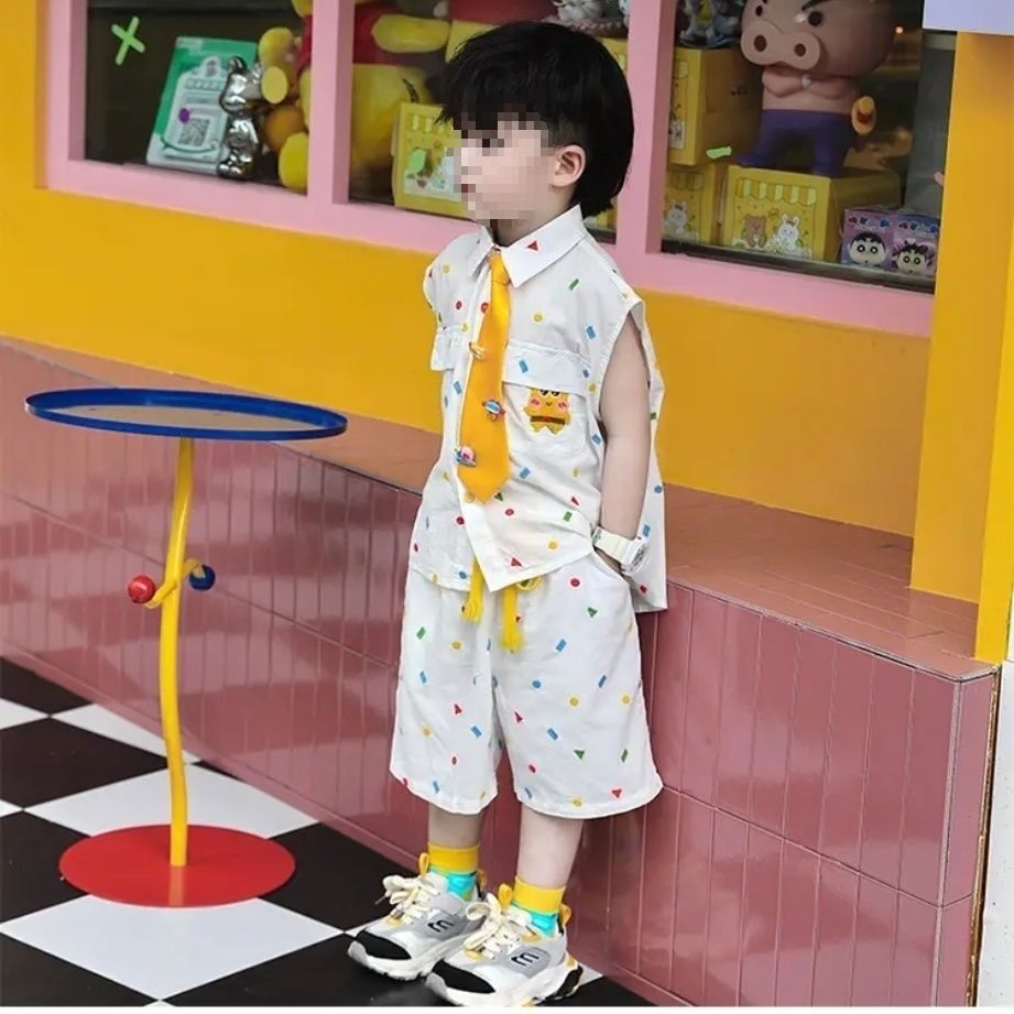 소년 민소매 셔츠 정장 여름 만화 2024 새로운 한국 스타일 캐주얼 만화 반바지 어린이와 중학생을위한 투피스 세트스토어 가기