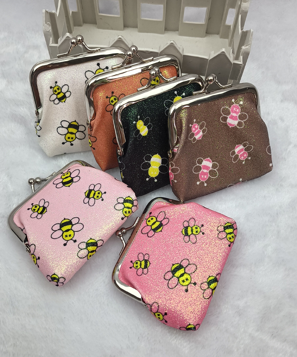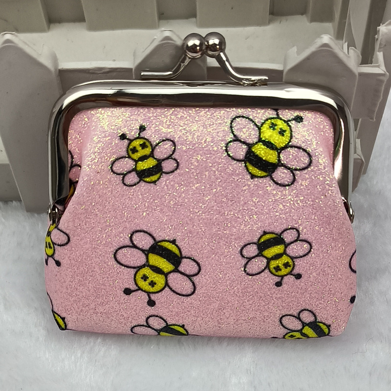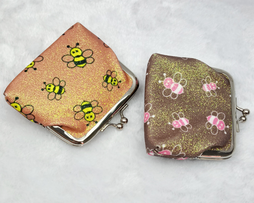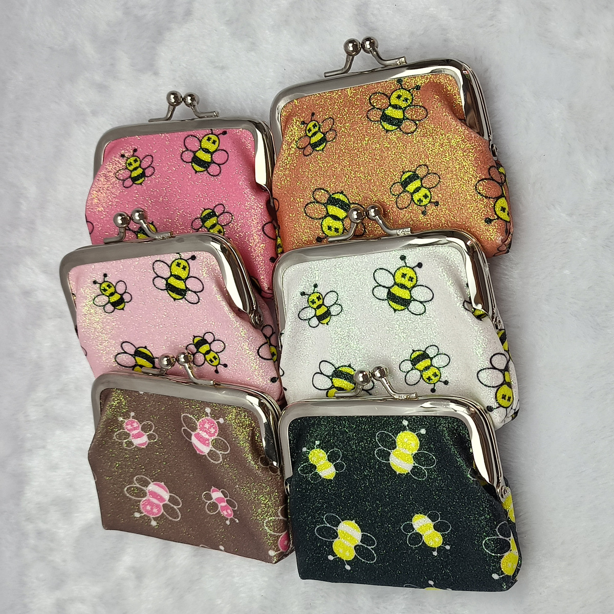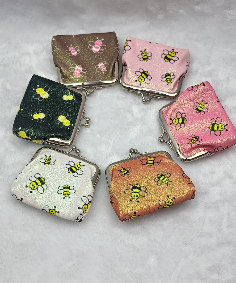 새로운 골드 파우더 꿀벌 동전 지갑 동전 가방 철 버클 클립 가방 3inch 클립 가방 어린이 작은 선물 가방