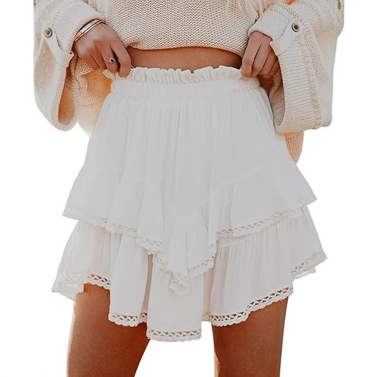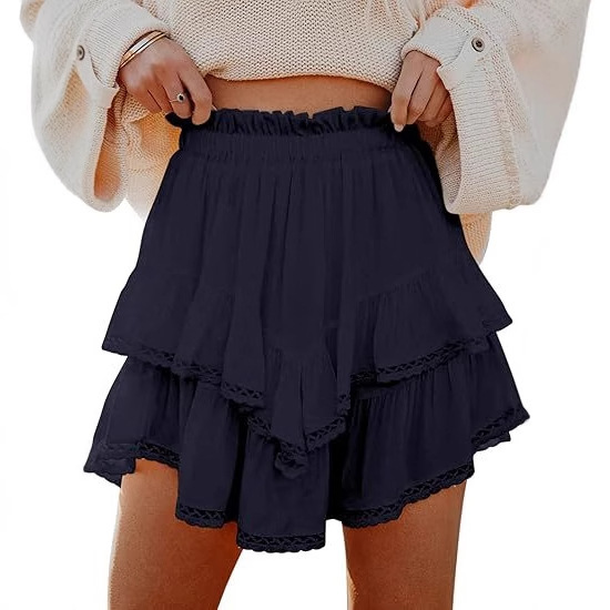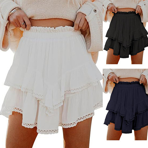 유럽과 미국의 국경 간 여성 캐주얼 보헤미안 주름 레이어드 스커트 세련된 하이 웨이스트 솔리드 컬러 미니 스커트