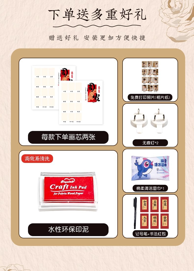 • 【G1335】(업그레이드 모델: 인화지가 더 선명함) [33*33 호두색 세로] 한 살 + 서예 빨간 봉투 6팩