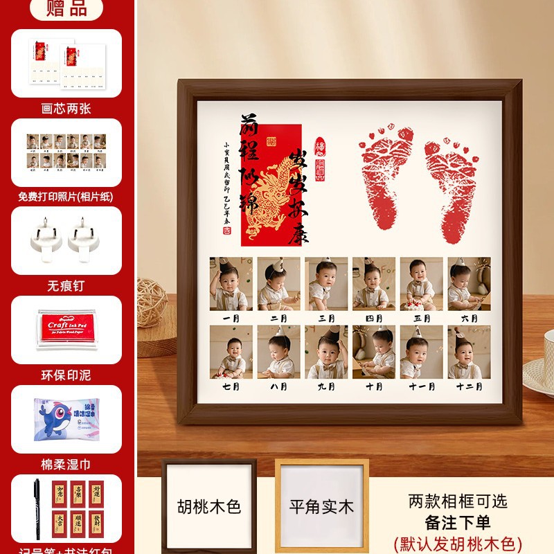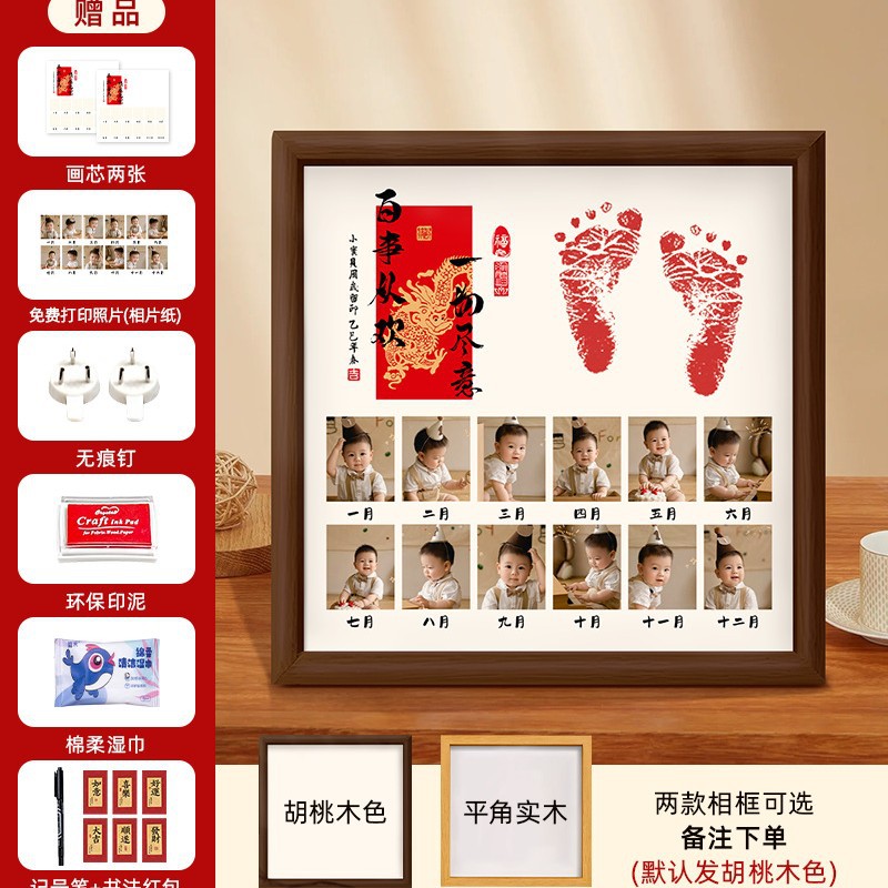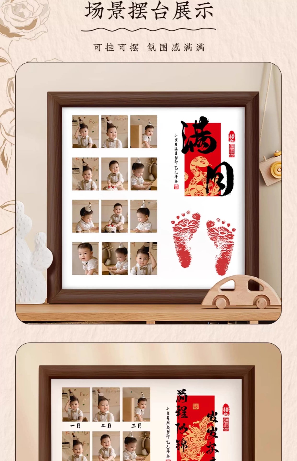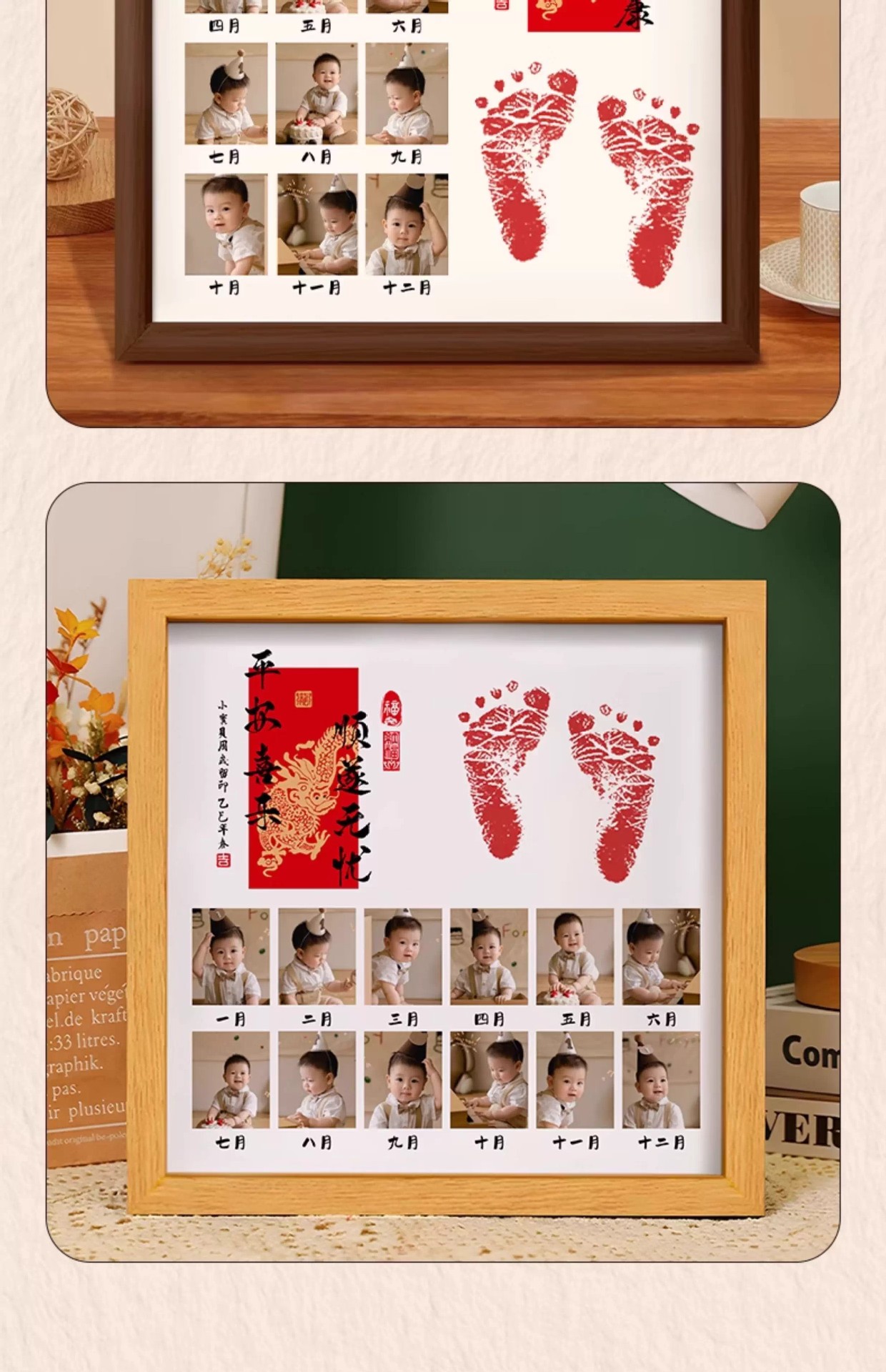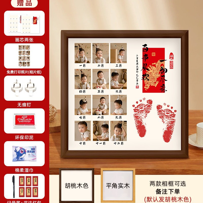한 달 된 아기의 손과 발자국, 용 아기의 의식 사진 프레임, 손자국, 100일 된 아기의 발자국, 기념품 잉크 패드