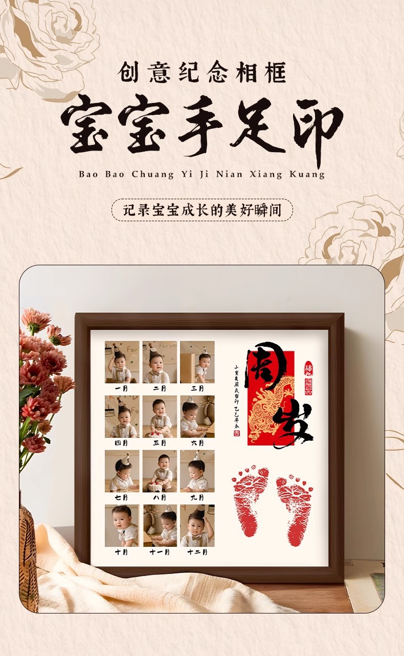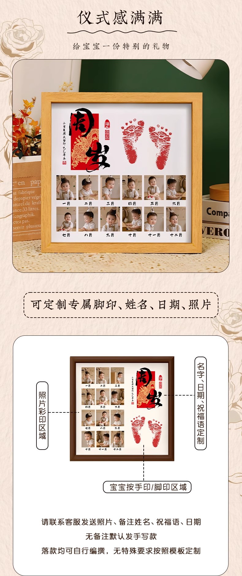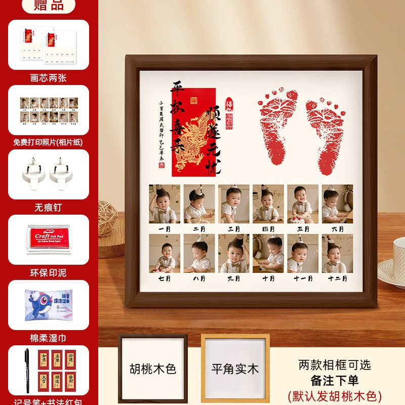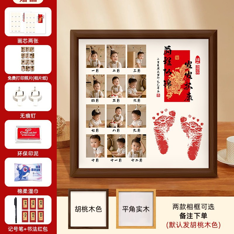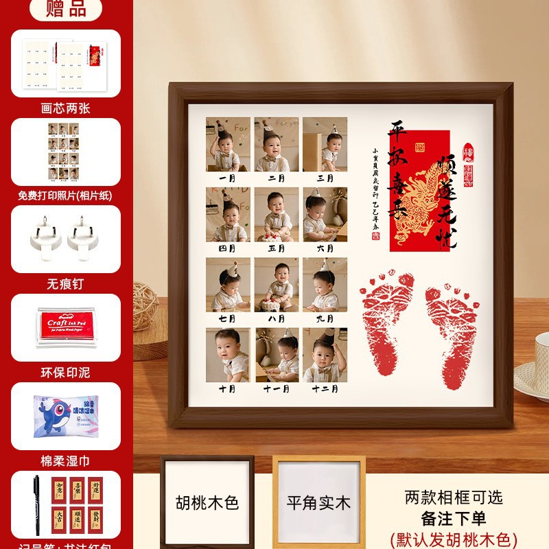 한 달 된 아기의 손과 발자국, 용 아기의 의식 사진 프레임, 손자국, 100일 된 아기의 발자국, 기념품 잉크 패드