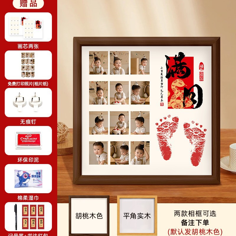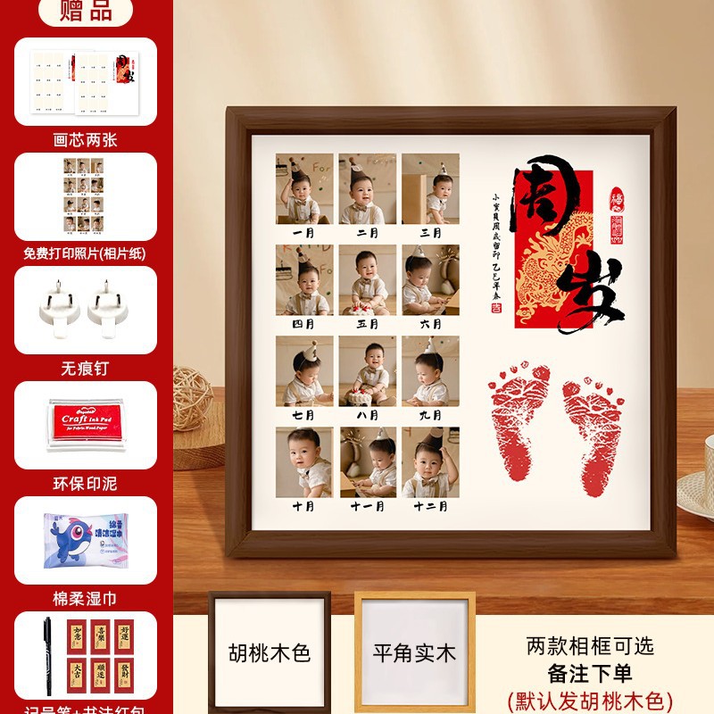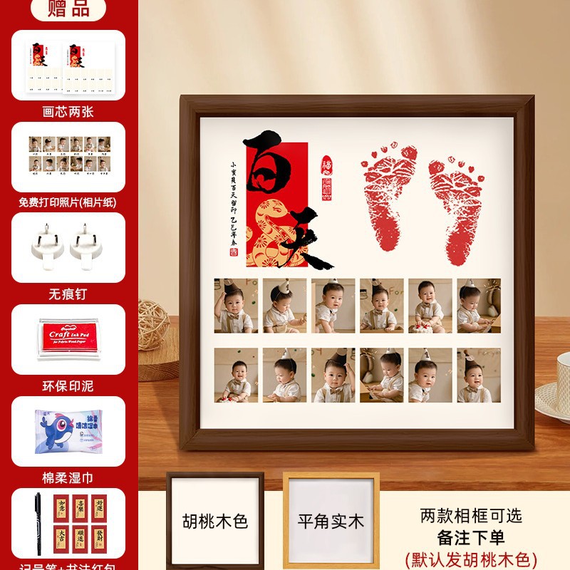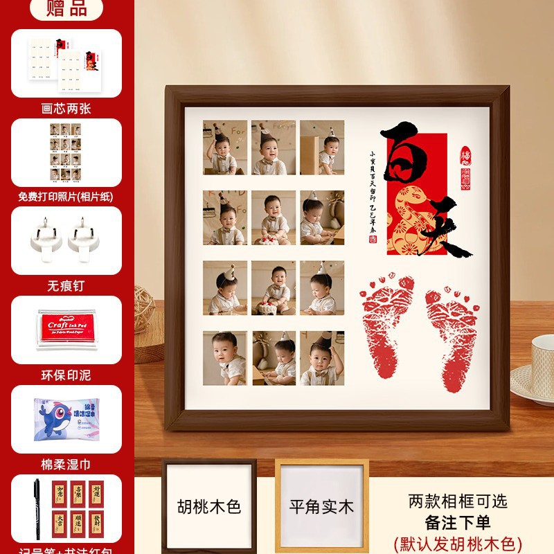 • 【G1382】(업그레이드 모델: 인화지가 더 선명해짐) [33*33 월넛 컬러 가로] 백일