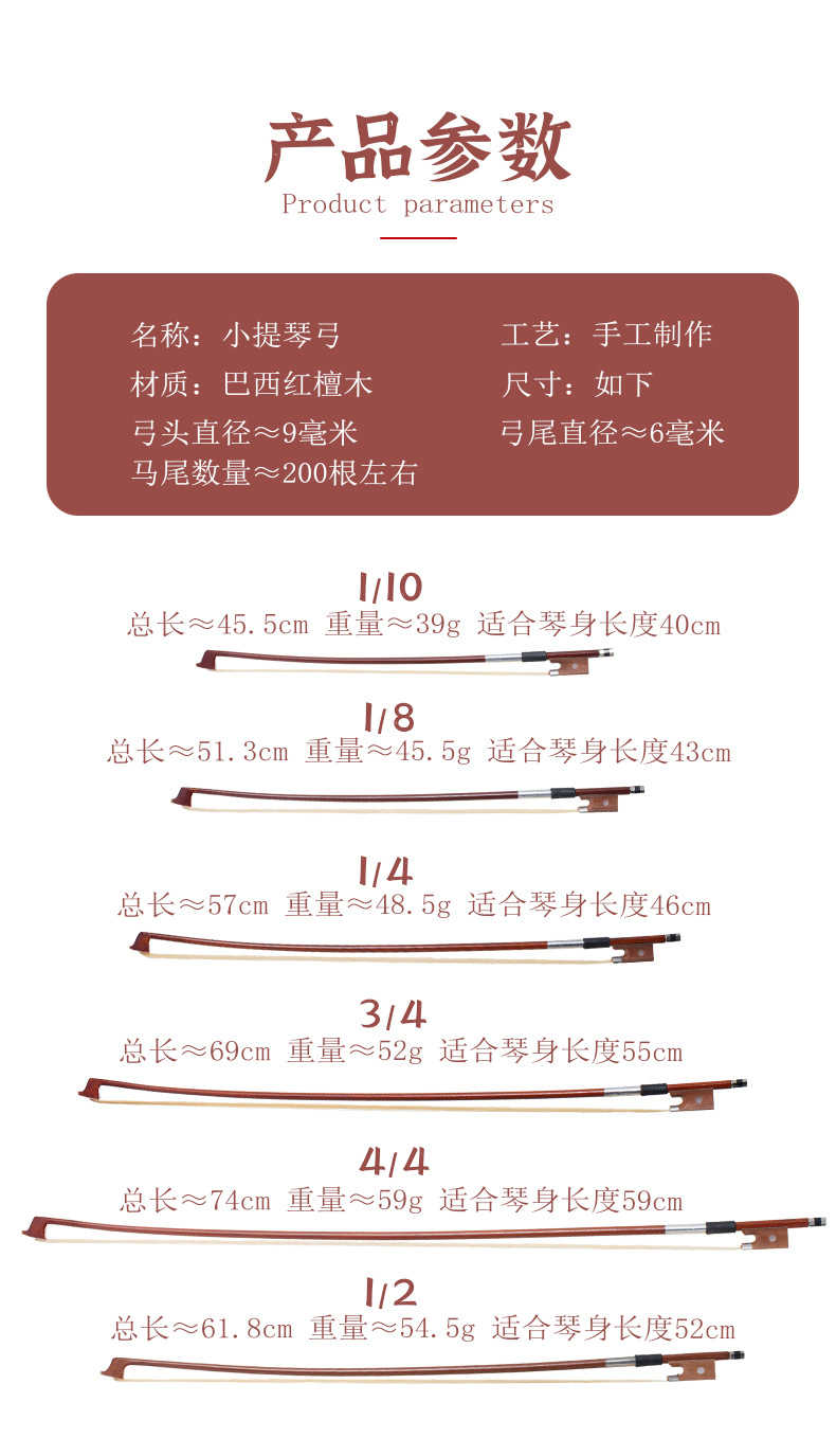 연주용 바이올린 활, 활봉, 순수 포니테일 1/2 4/4 활모, 브라질 나무 활, 악기 액세서리스토어 가기