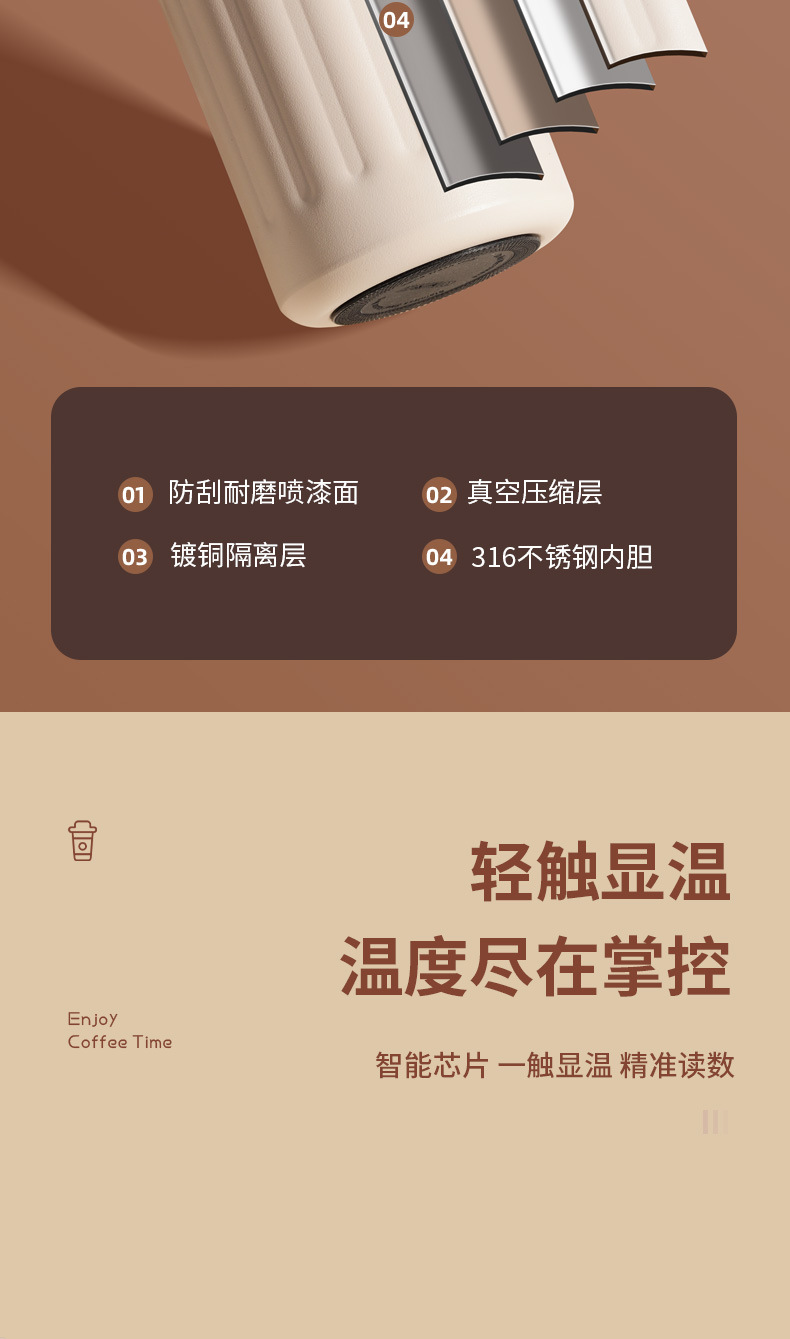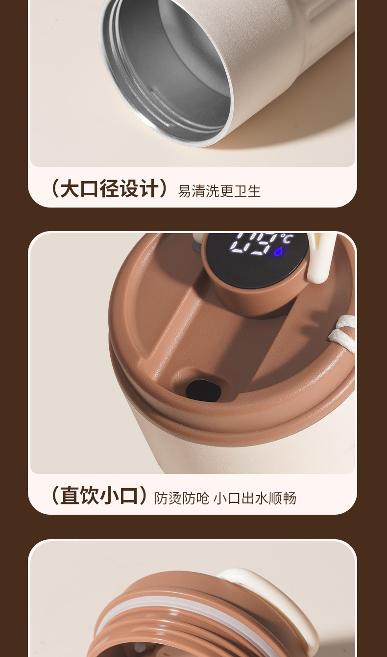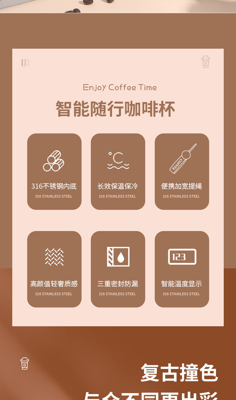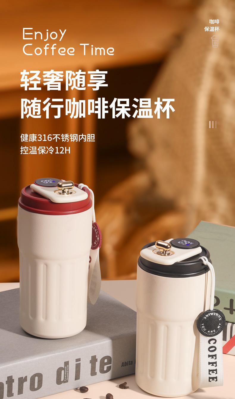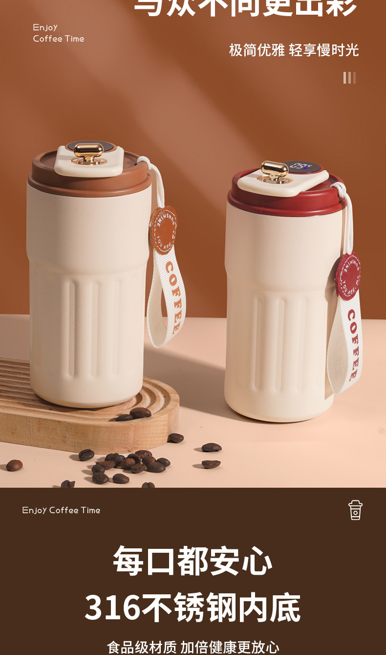 316 스테인레스 스틸 콜라 팔각형 커피 컵 로프 휴대용 절연 컵 선물 컵 스마트 팔각형 컵 디지털 디스플레이 컵