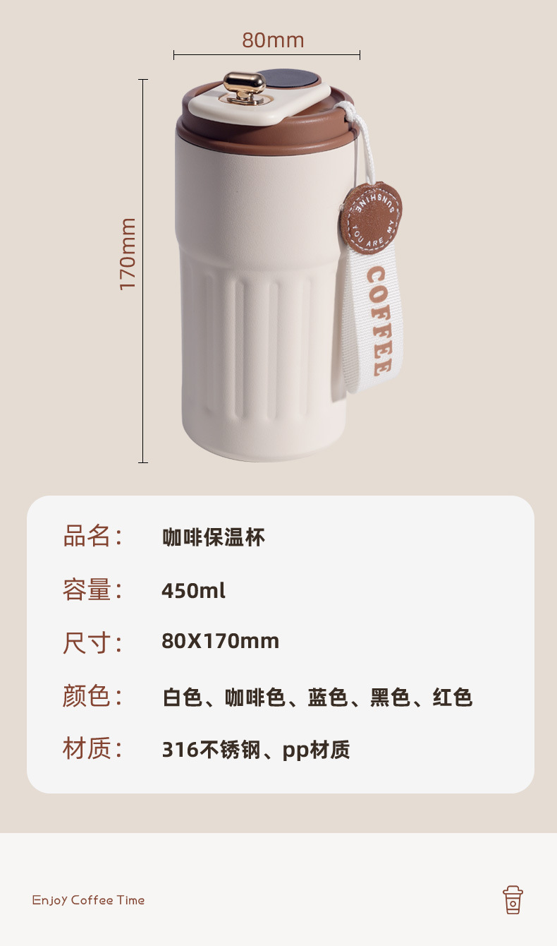316 스테인레스 스틸 콜라 팔각형 커피 컵 로프 휴대용 절연 컵 선물 컵 스마트 팔각형 컵 디지털 디스플레이 컵스토어 가기