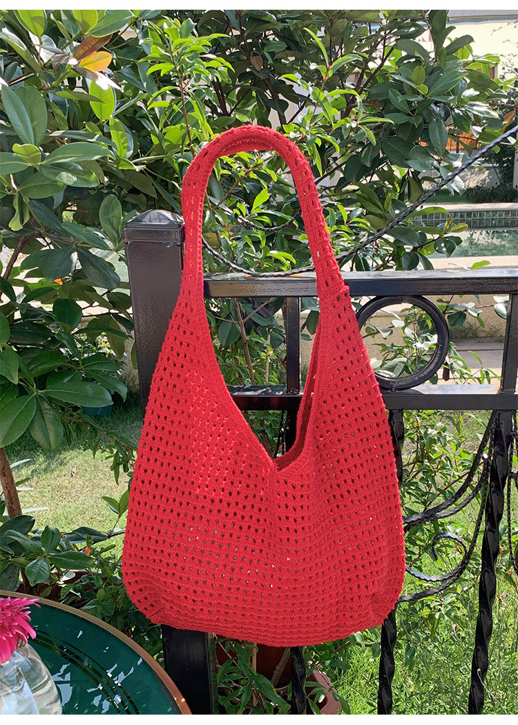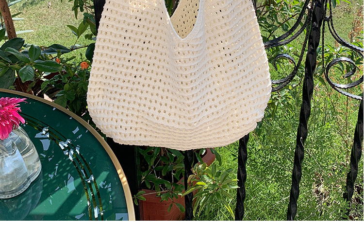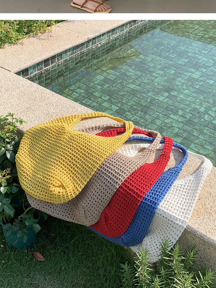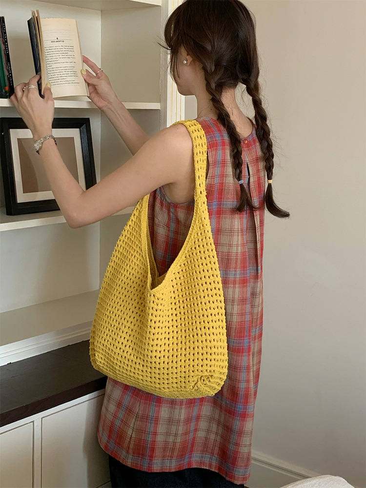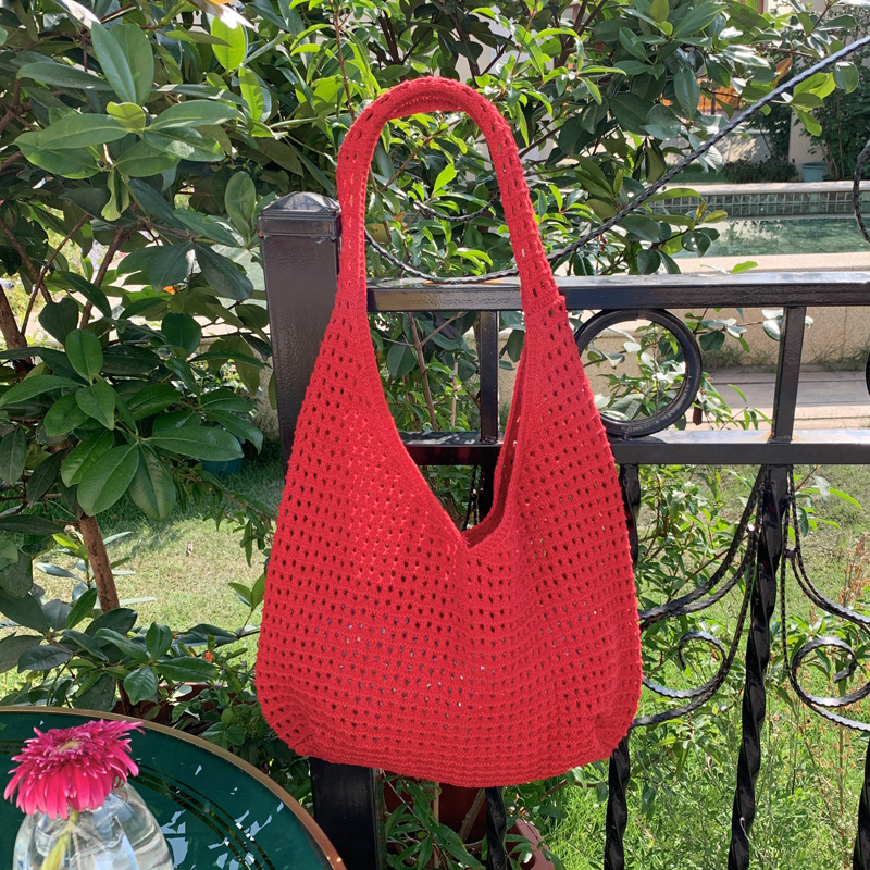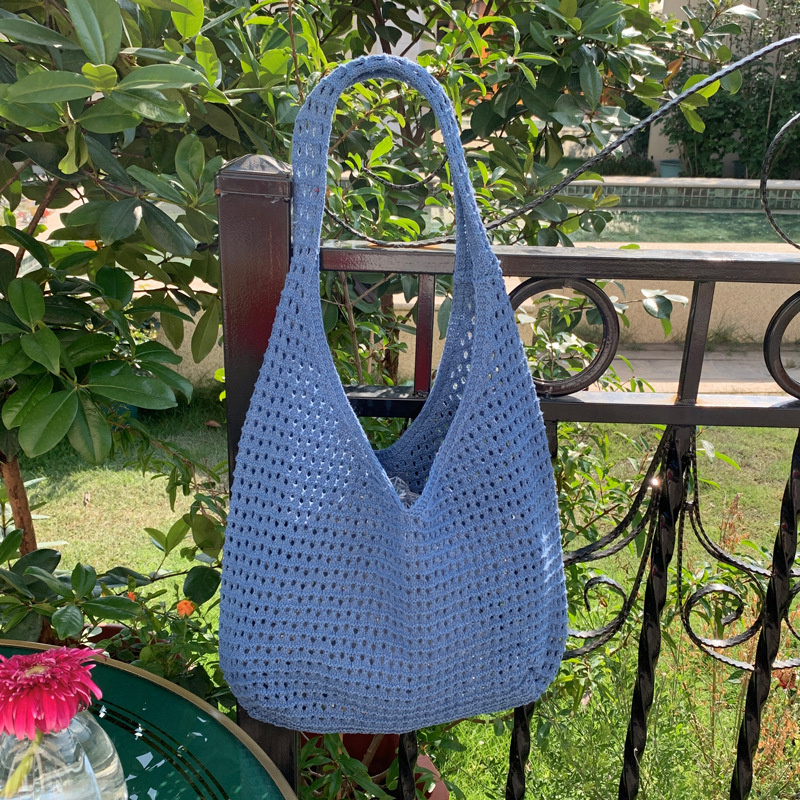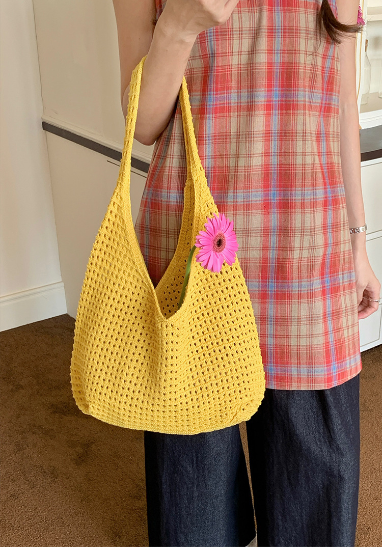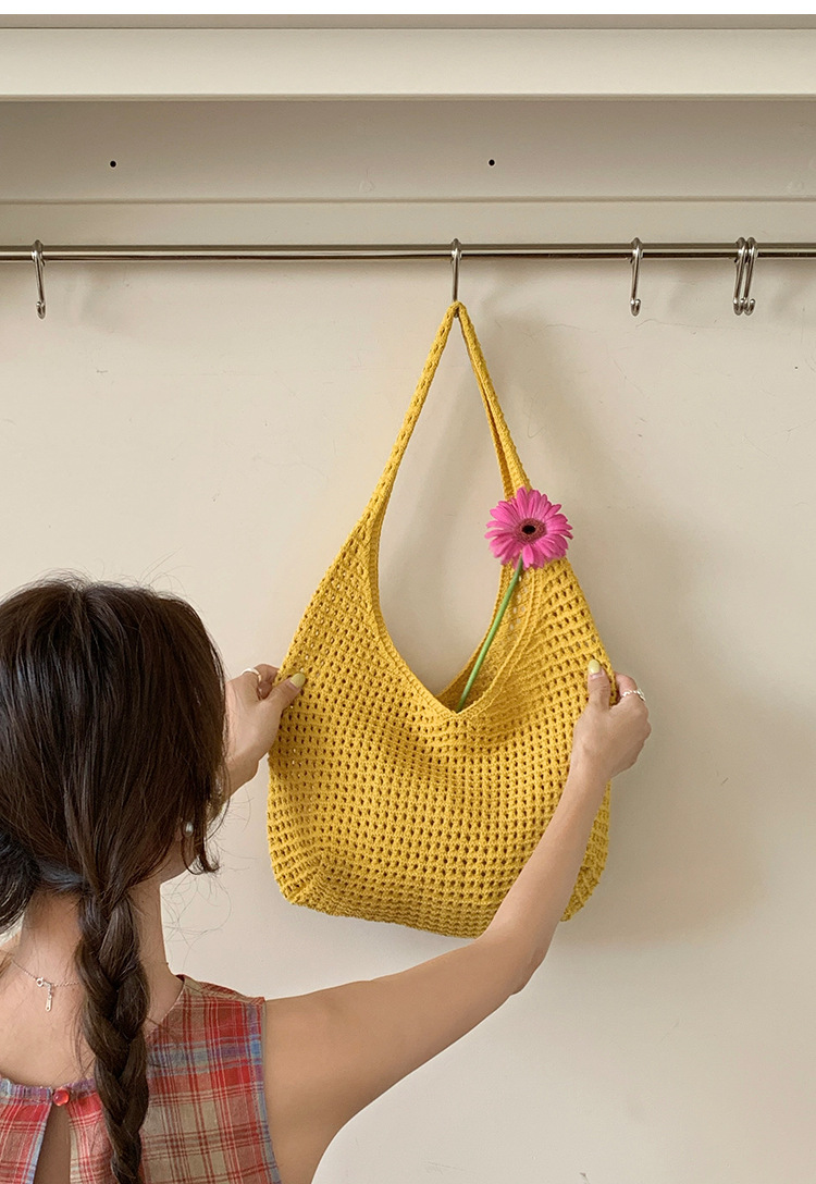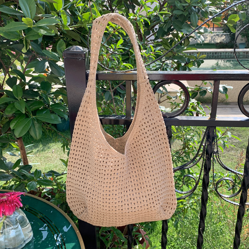 새로운 할로우 그물 포켓 인 스타일 니트 짠 가방 유행 여름 대용량 게으른 스타일 단일 어깨 니트 가방스토어 가기