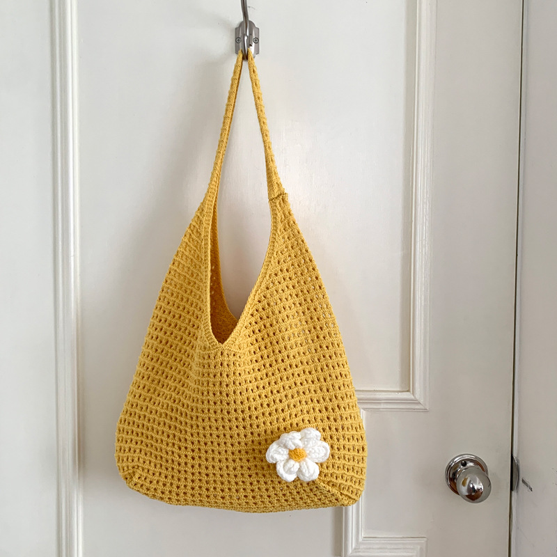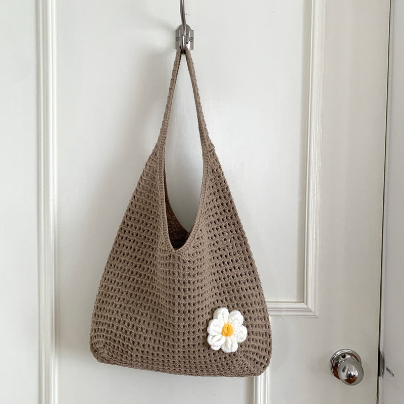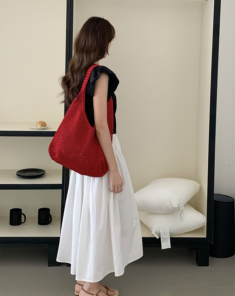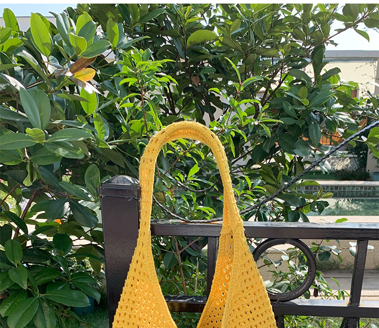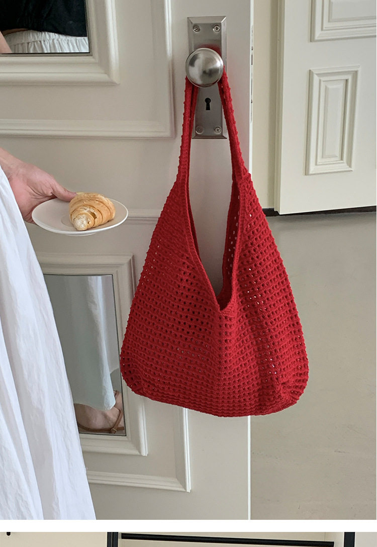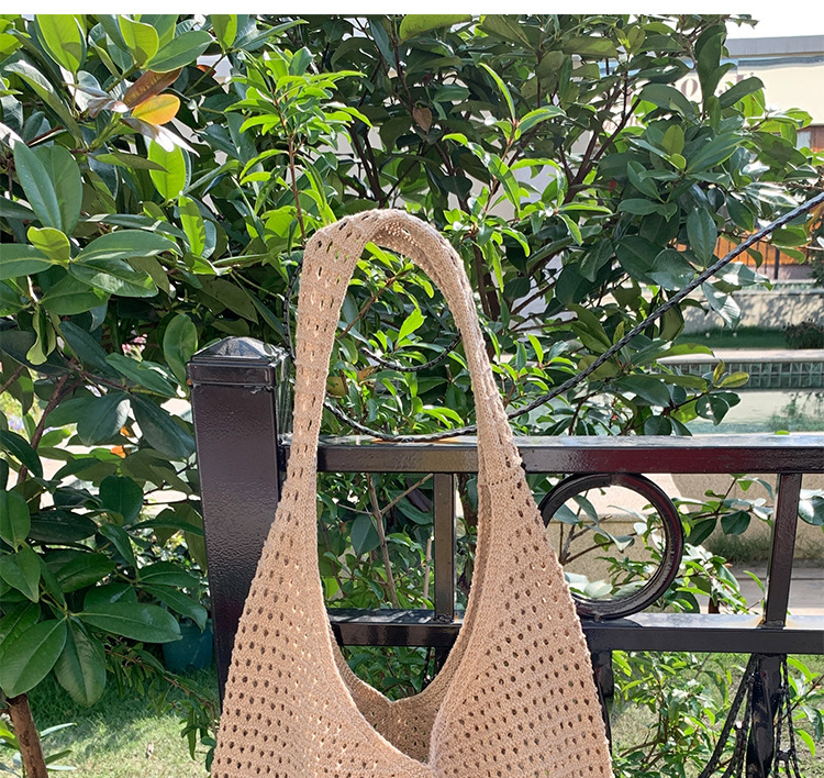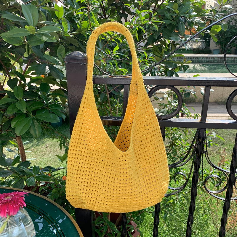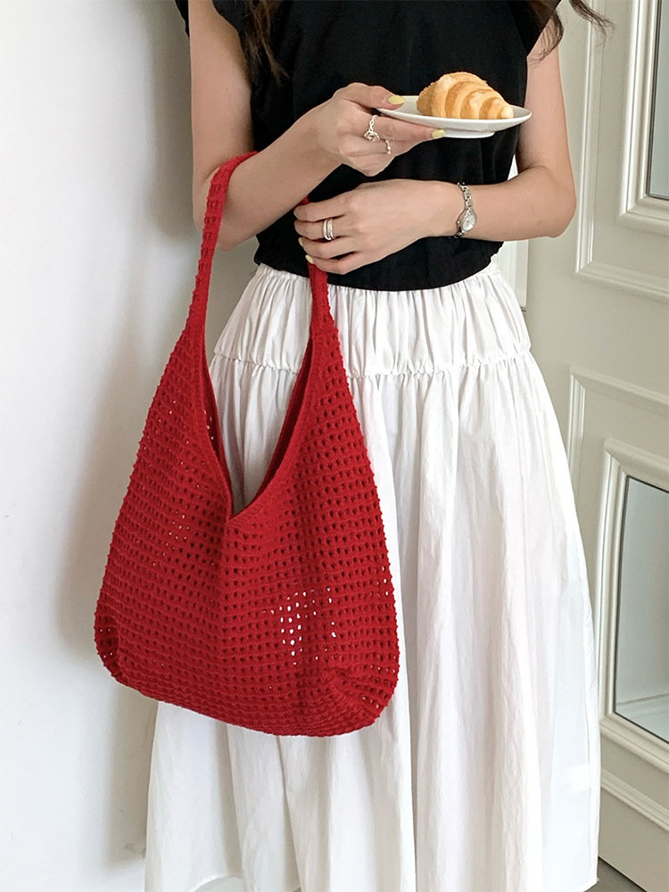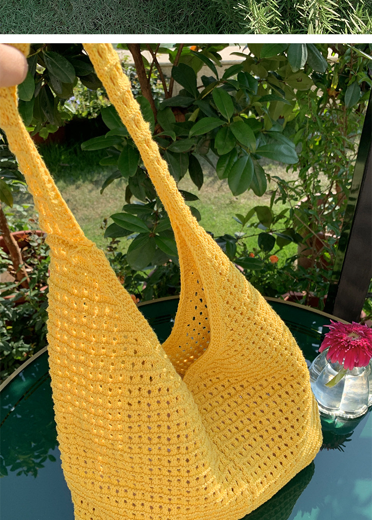 새로운 할로우 그물 포켓 인 스타일 니트 짠 가방 유행 여름 대용량 게으른 스타일 단일 어깨 니트 가방스토어 가기