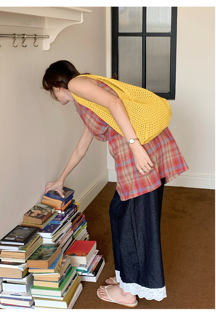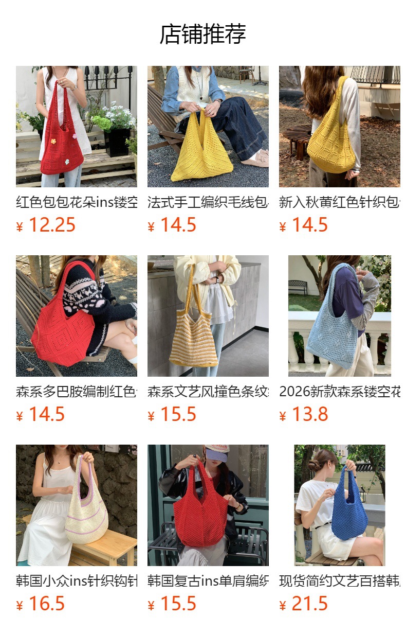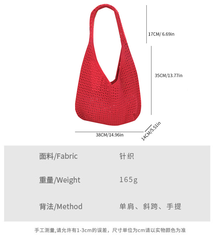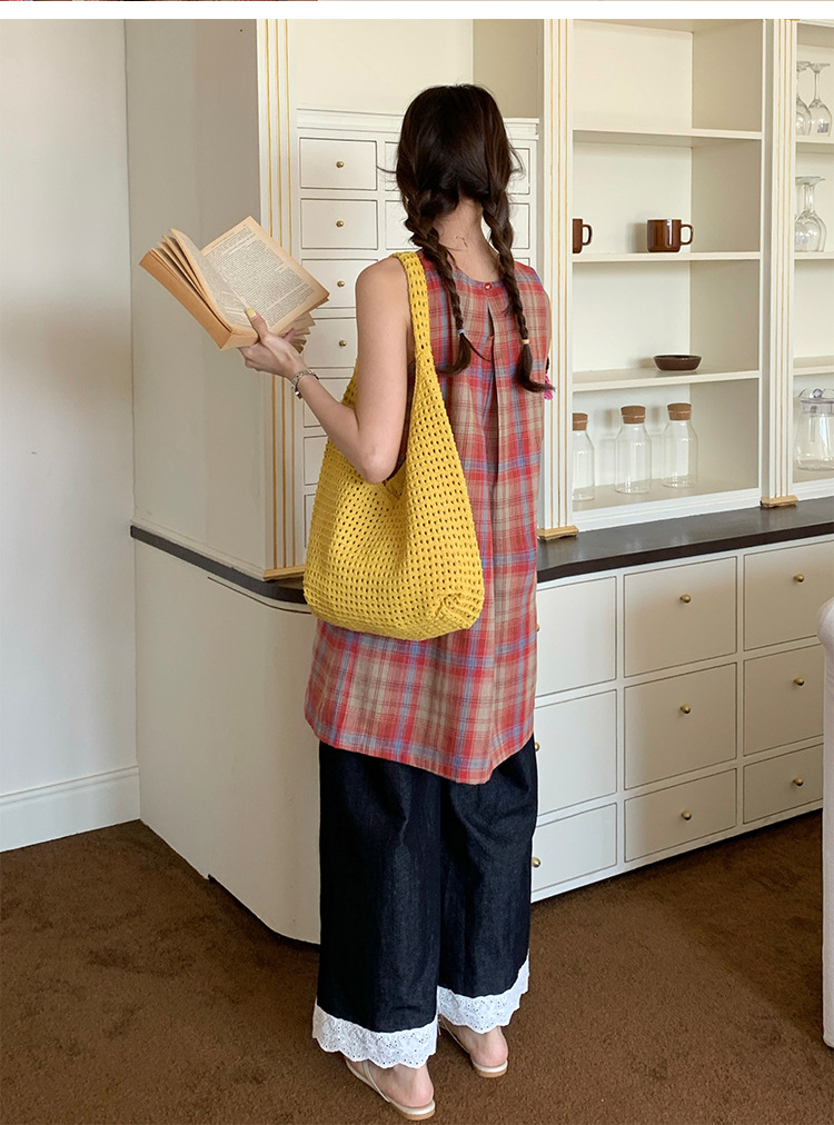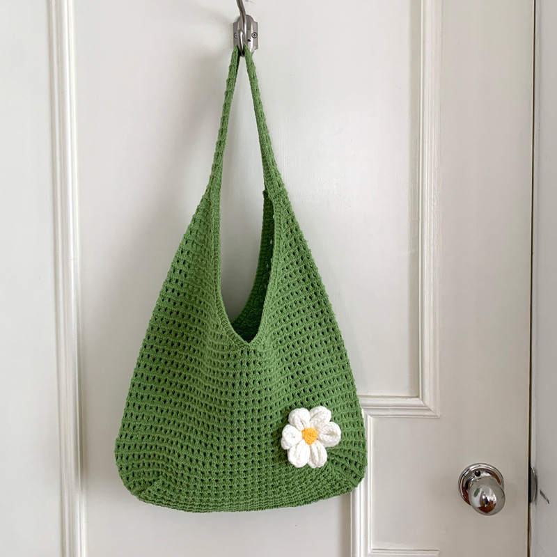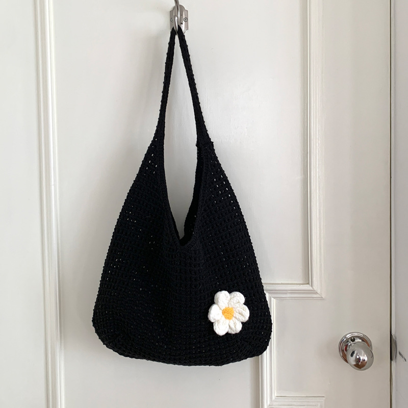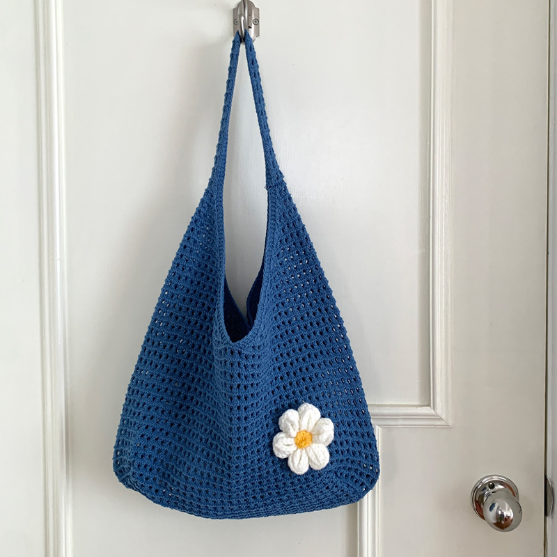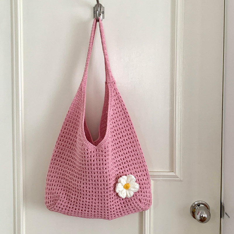 새로운 할로우 그물 포켓 인 스타일 니트 짠 가방 유행 여름 대용량 게으른 스타일 단일 어깨 니트 가방스토어 가기