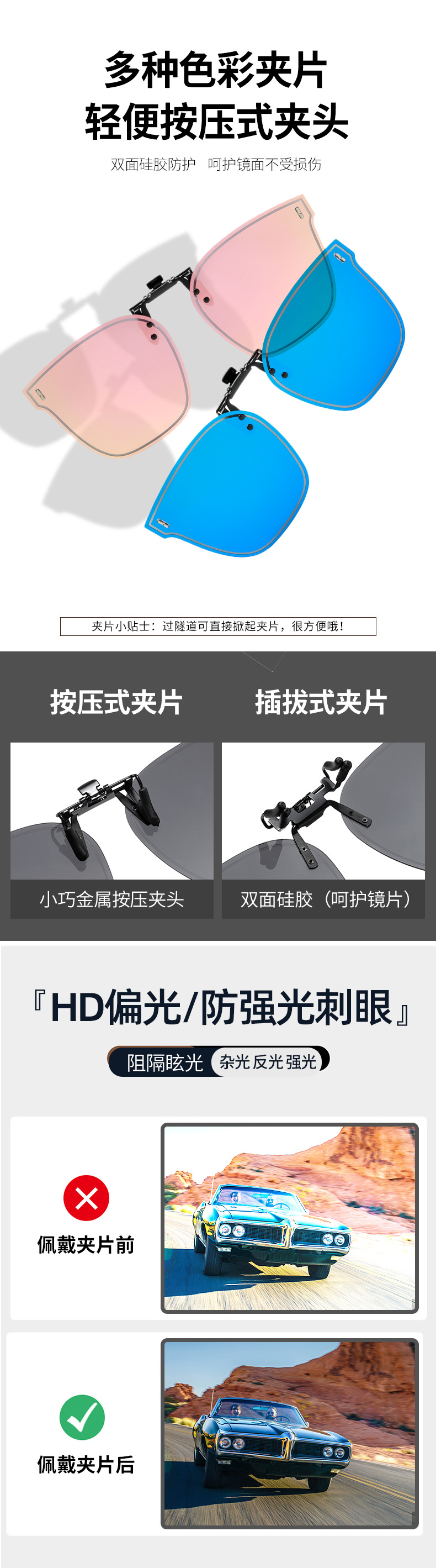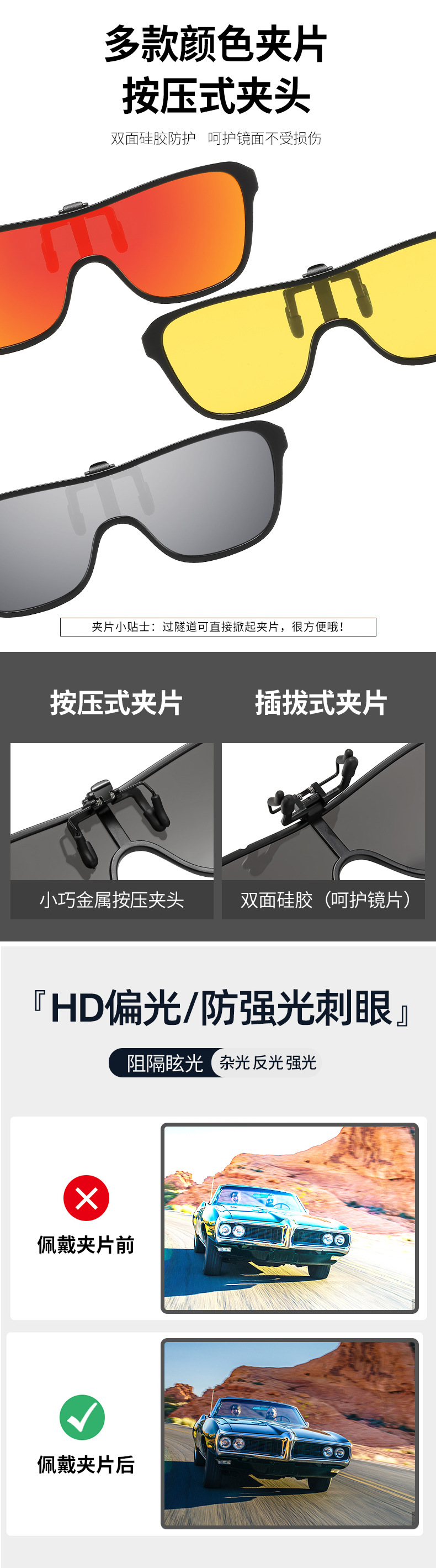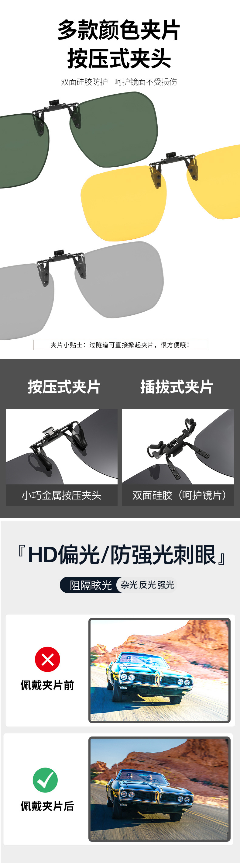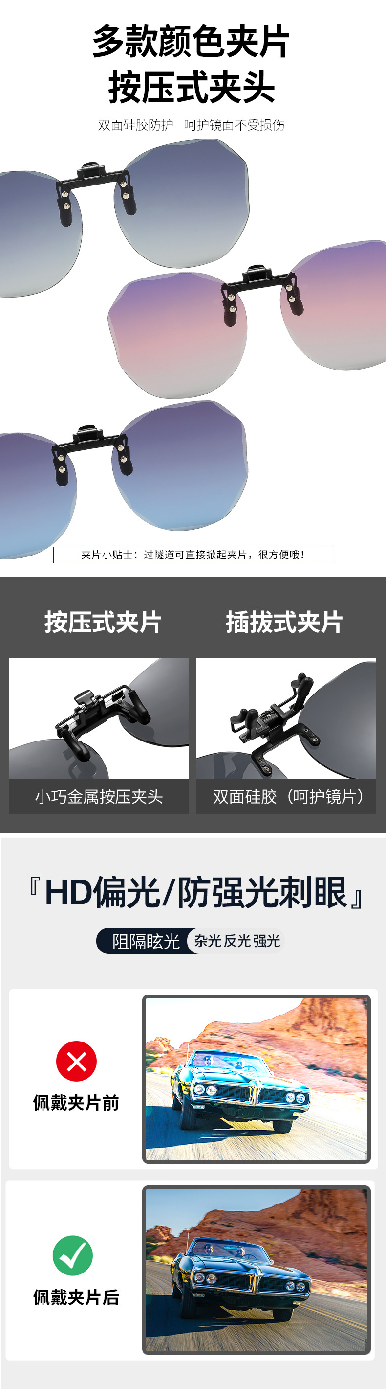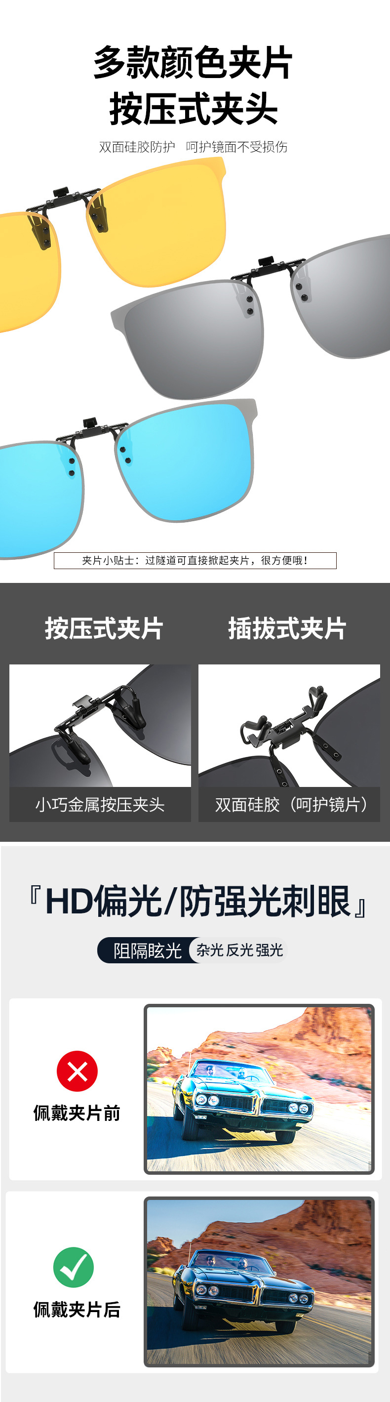 다양한 선글라스 클립온 플립업 편광 선글라스 남녀공용 자외선 차단 주야간 운전용 선글라스스토어 가기