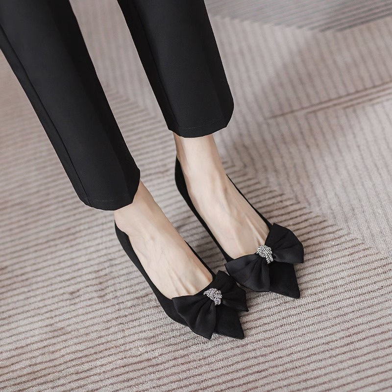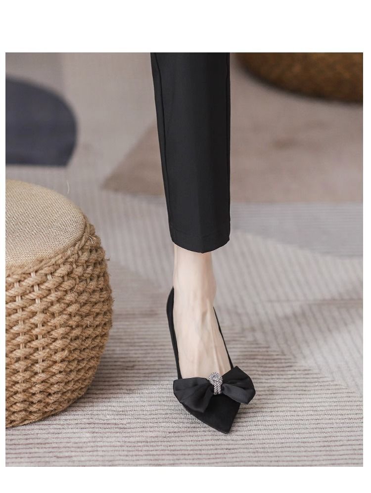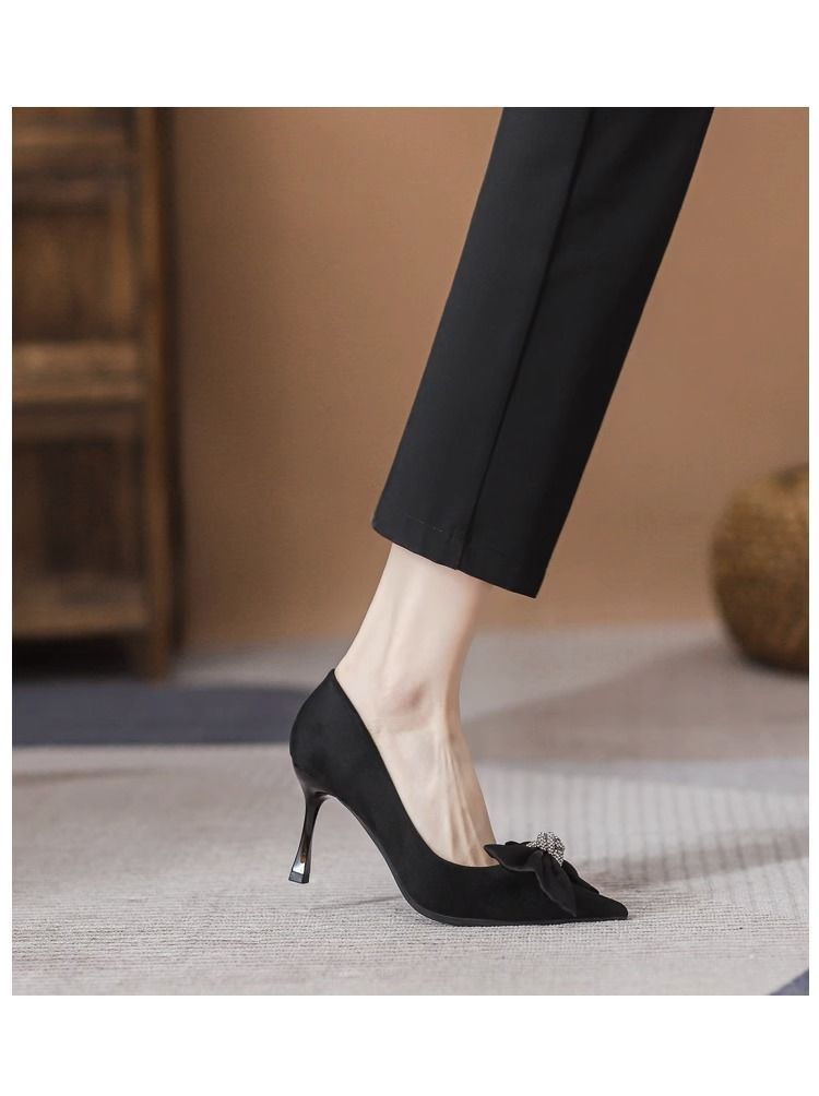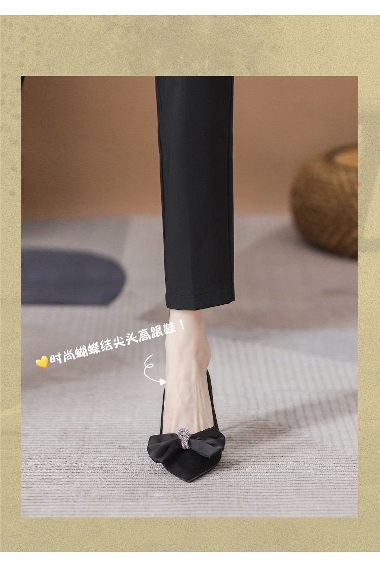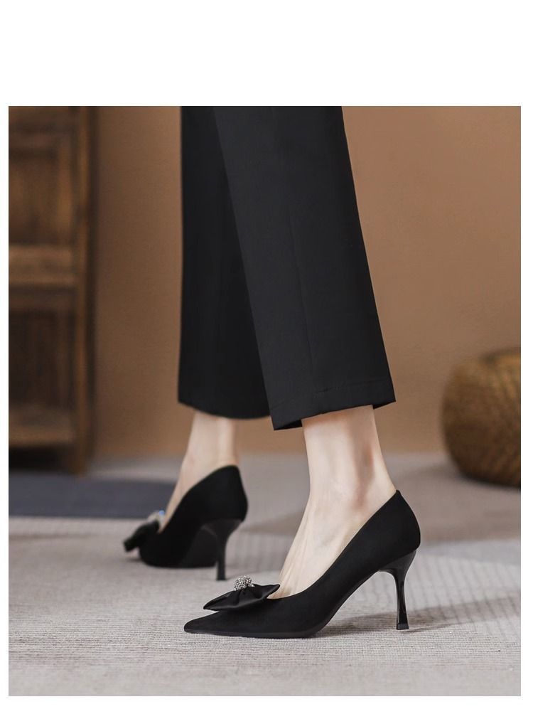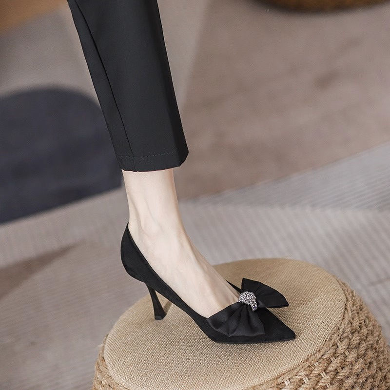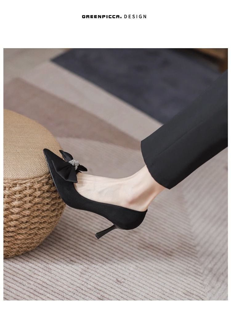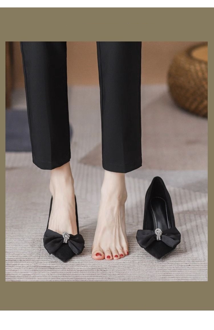 여성용 프렌치 하이힐, 스틸레토 힐, 2025 봄 가을 새로운 스타일, 여성용 뾰족한 앞코, 얕은 입구, 리본, 통근 패션 슈즈스토어 가기